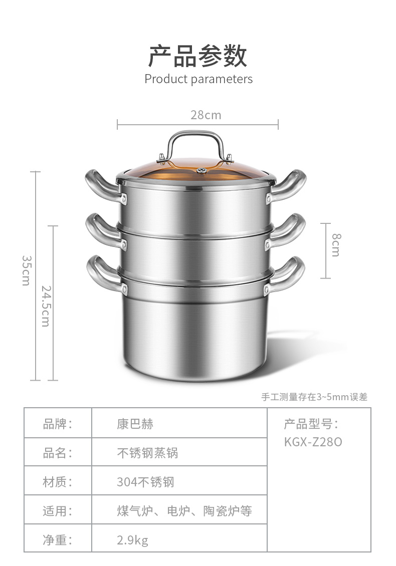康巴赫新欧式304蒸锅28cm KGX-Z28O(单位:套)12043032 28蒸锅