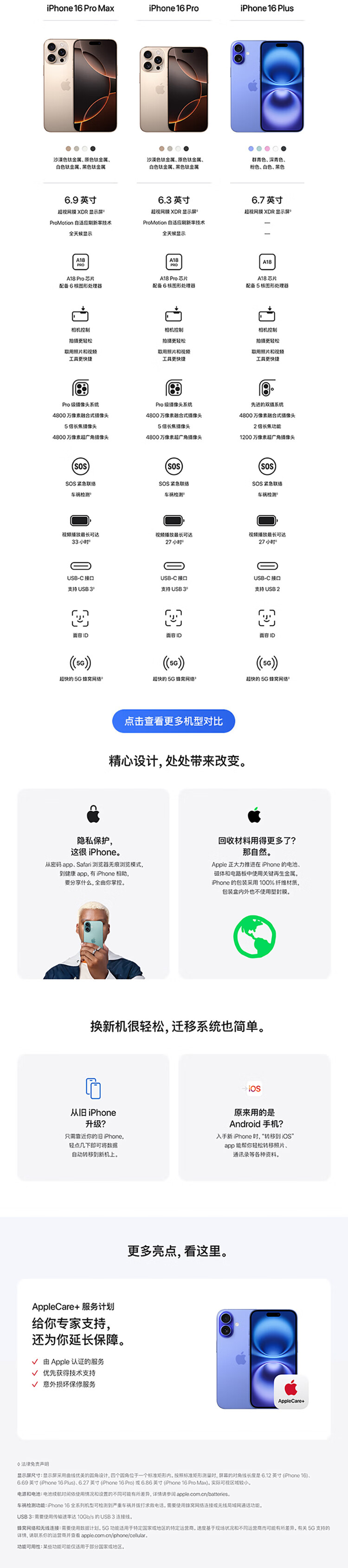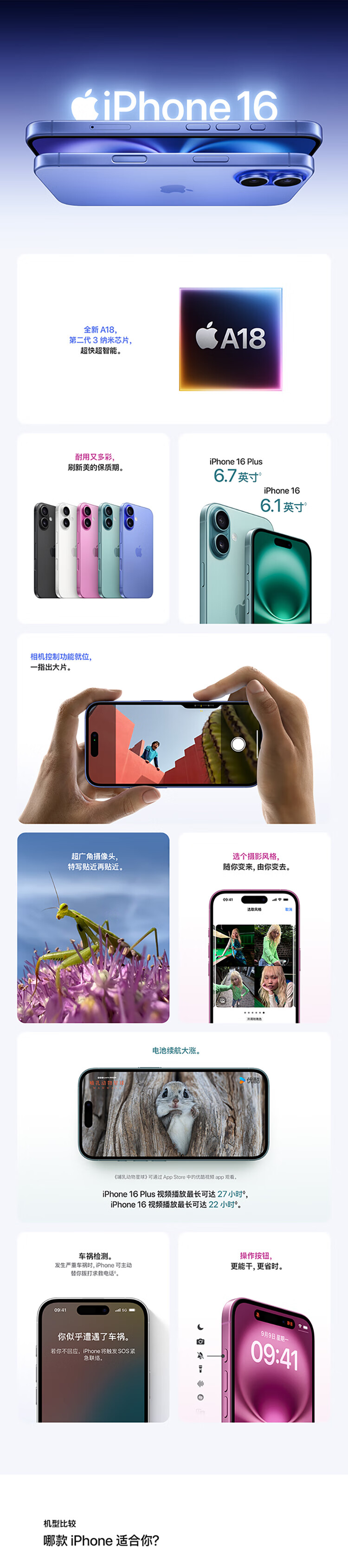 Apple/苹果 iPhone 16(A3288)双卡双待手机5G 手机 (单位/部) 黑色 256G