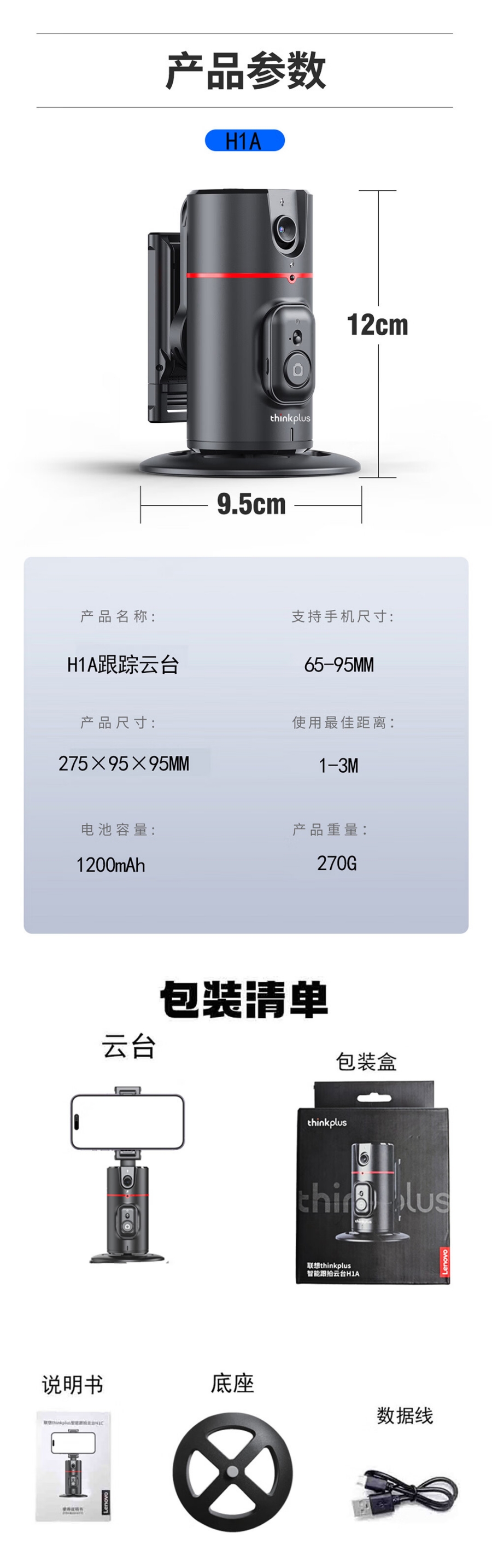 联想(Lenovo) H1A 360°旋转 智能AI追踪跟拍云台 黑色(单位:台)