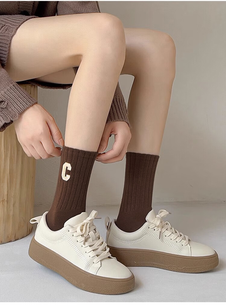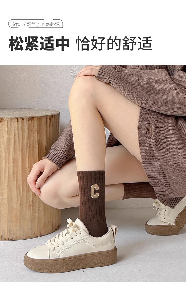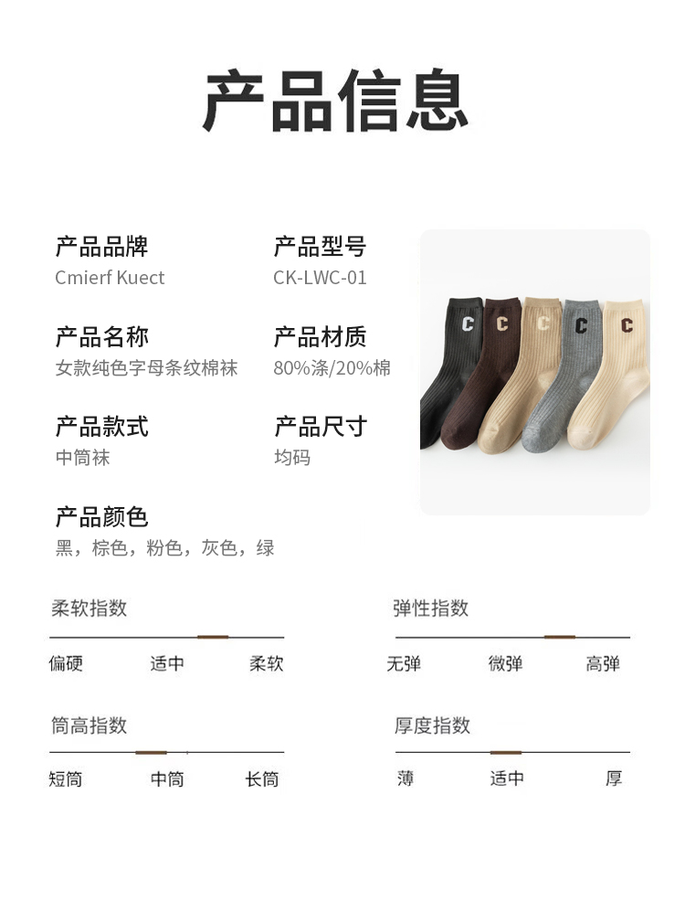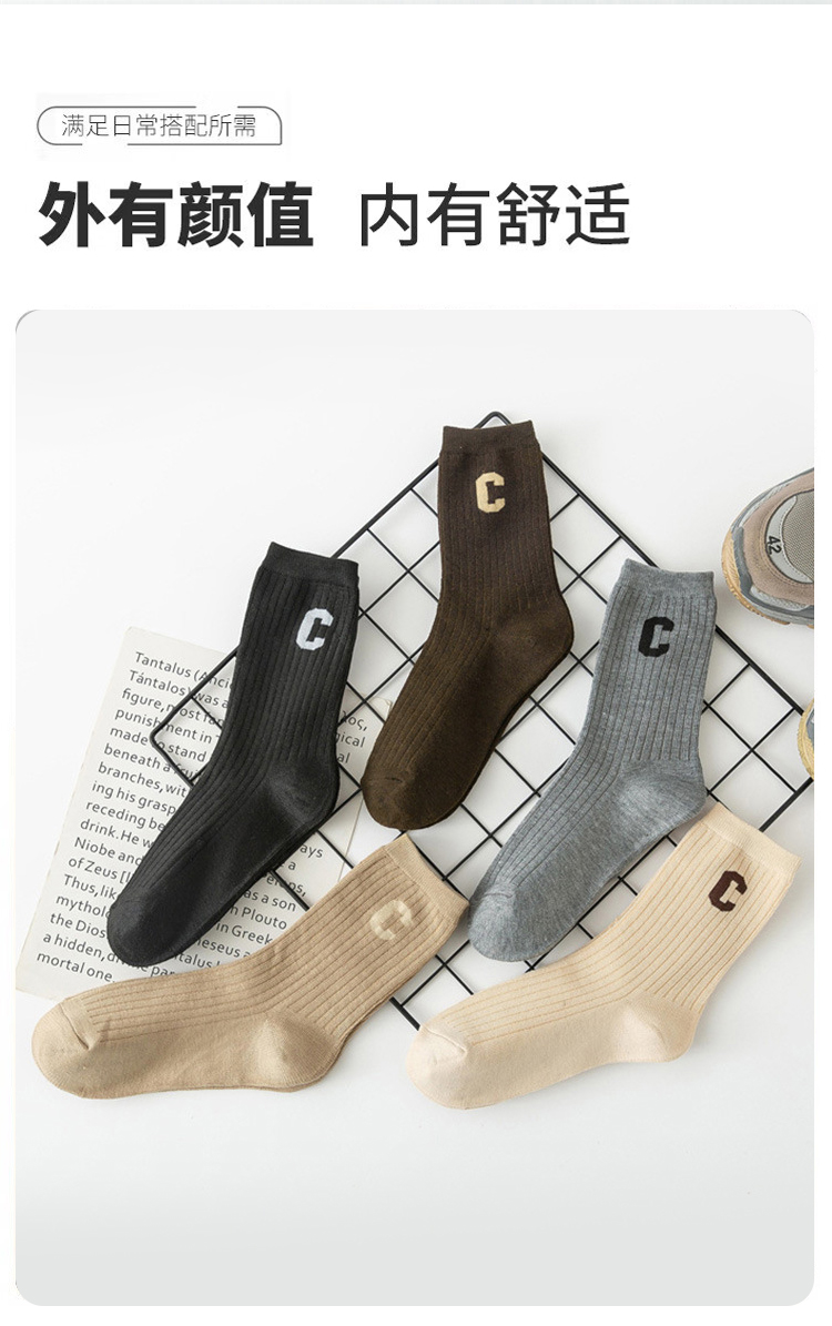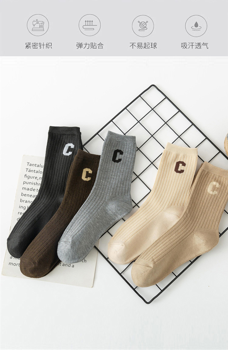 Cmierf Kuect(中国CK) 女款纯色字母条纹棉袜 CK-LWC-01单独:盒 混色
