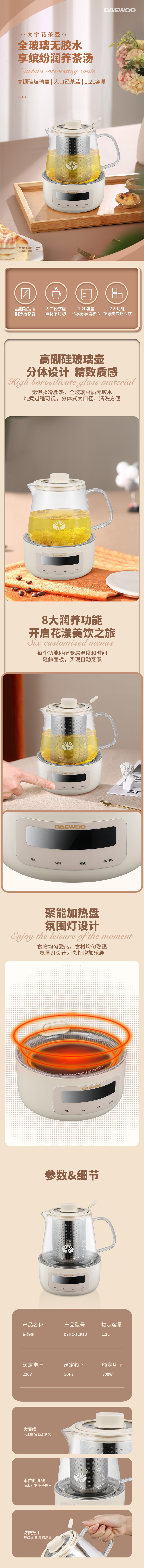 大宇(DAEWOO) DYHC-1291D 1200ml 多功能恒温养生壶 暖阳白(单位:台)