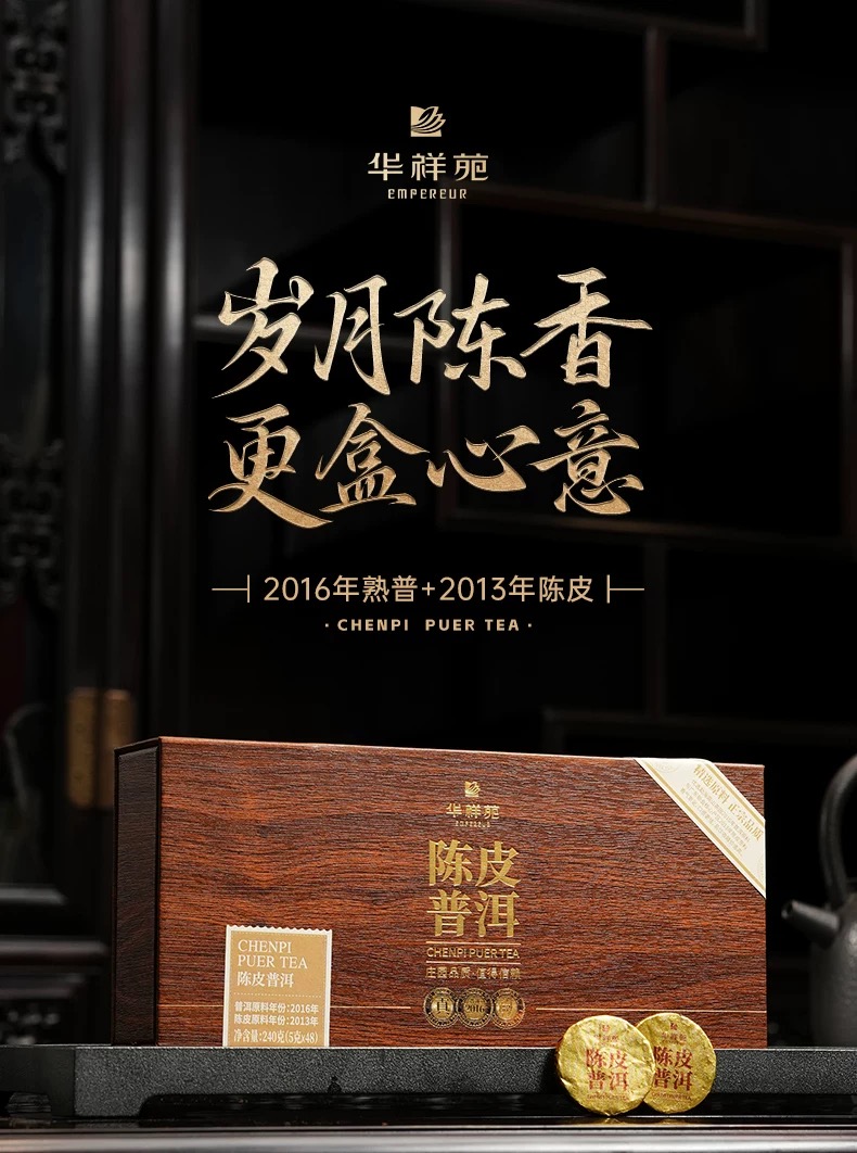 华祥苑 2013年陈皮2016年普洱茶叶 240g 陈皮普洱 黄色(单位:盒)