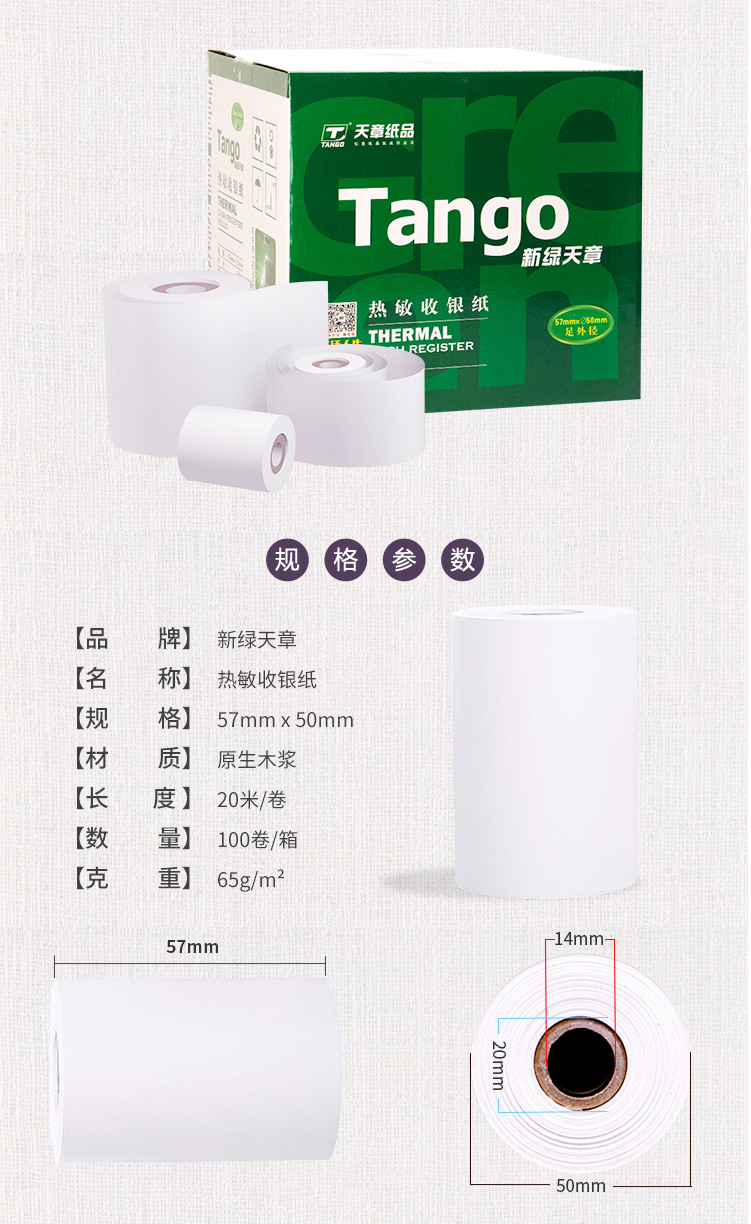 新绿天章 P3610 57×50型 100卷 热敏收银纸 白色(单位:箱)