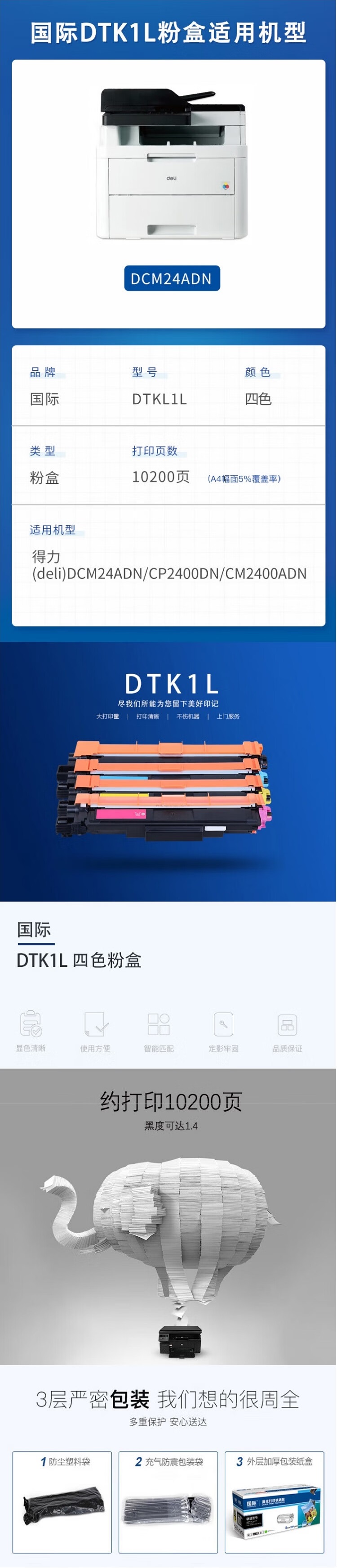 国际 DTK1L 10200页 适用得力(deli)DCM24ADN 粉盒 大容量 混色(单位:套)