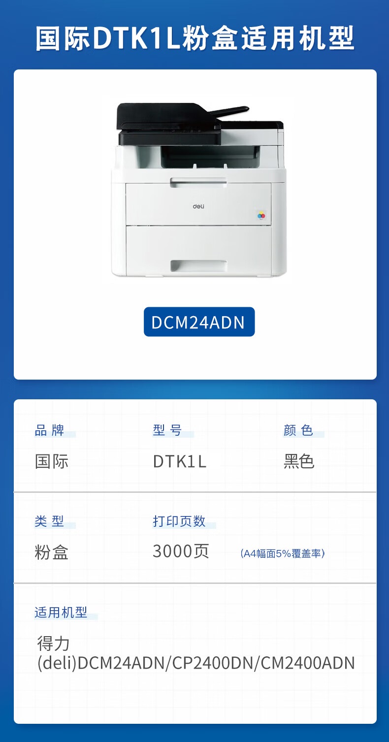 国际 DTK1L 3000页 适用得力(deli)DCM24ADN 粉盒 大容量 黑色(单位:支)