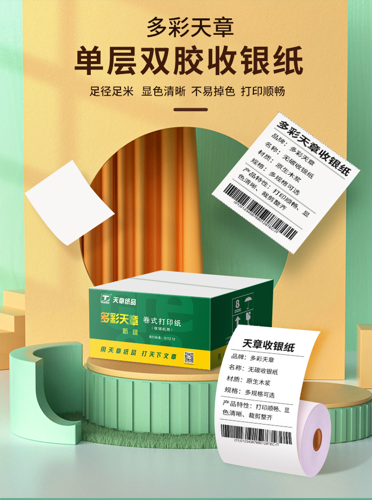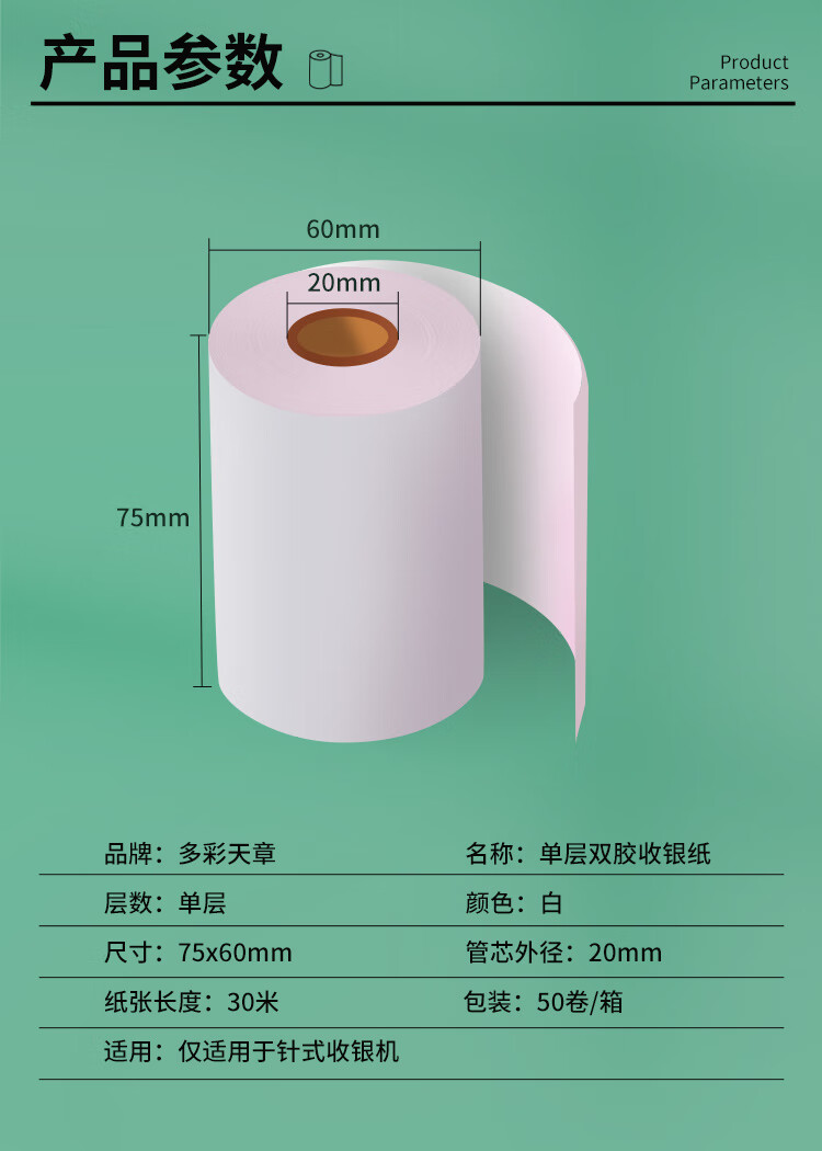 新绿天章 单层双胶 75mm*60mm 单层双胶收银纸 白色(单位:箱)
