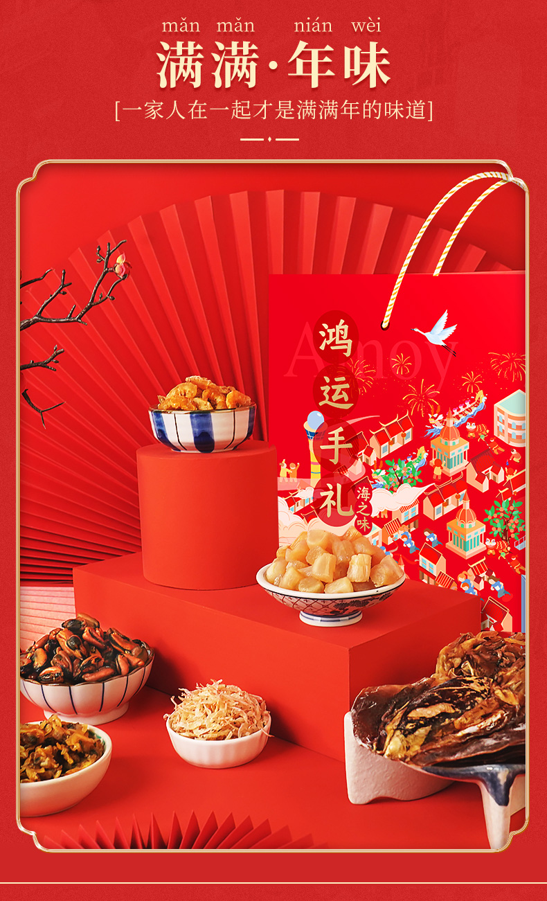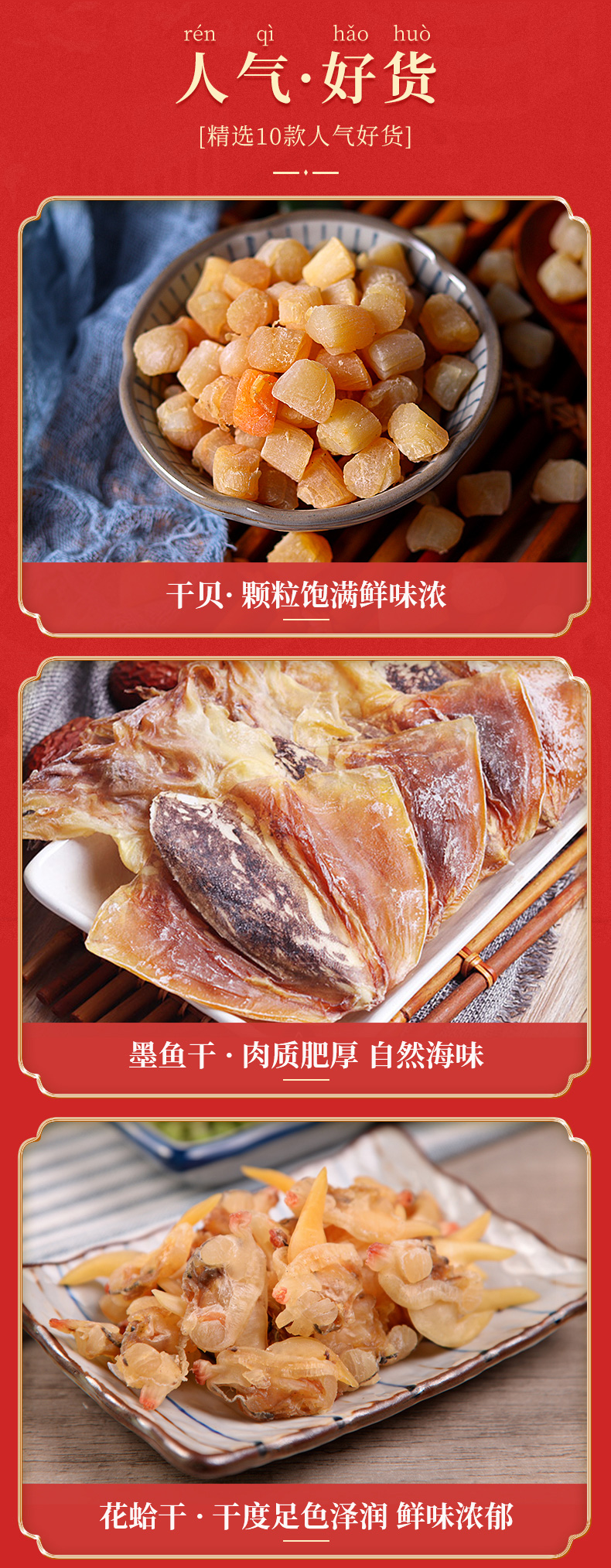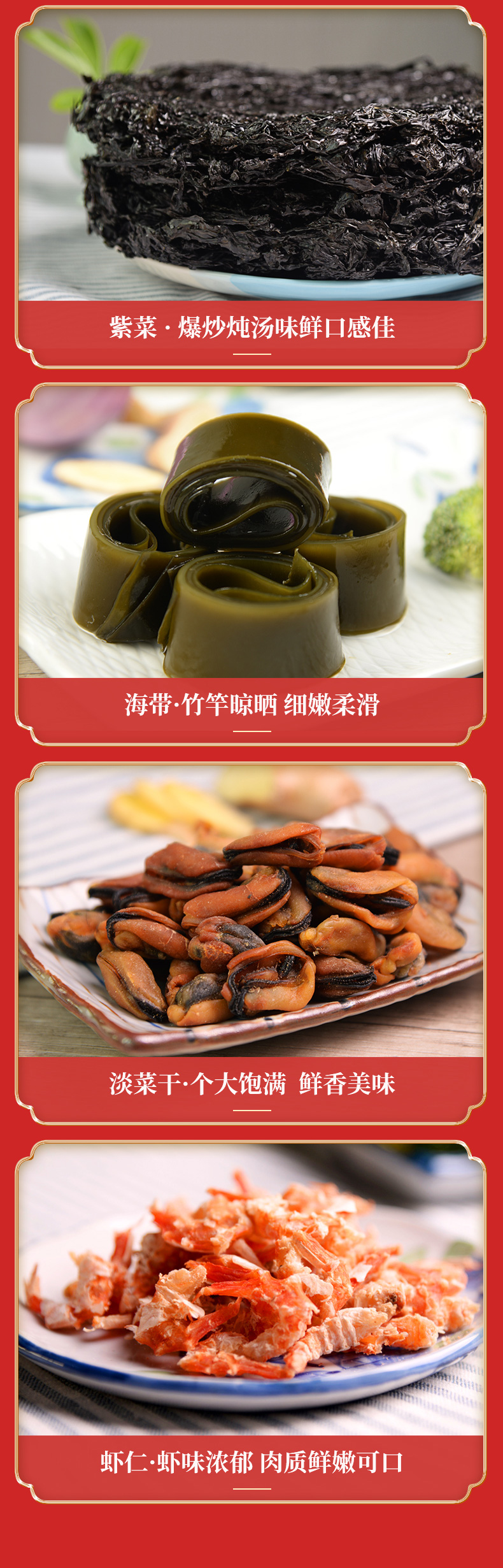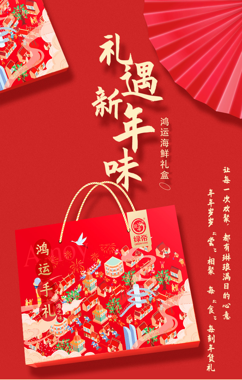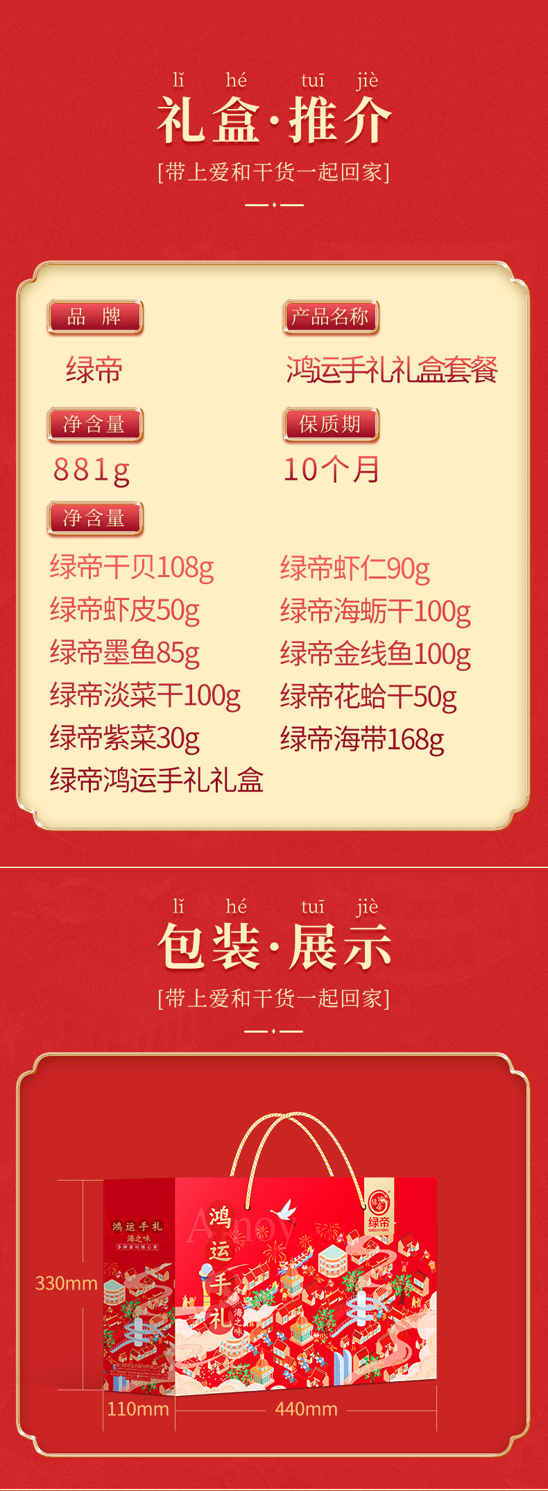 绿帝(GREEN KING) 鸿运海味海产品干货礼盒 881g 鲜香味美 红色(单位:盒)