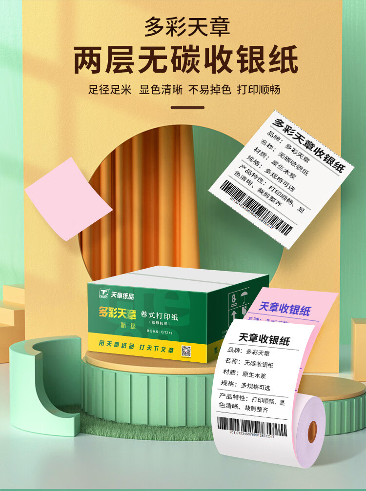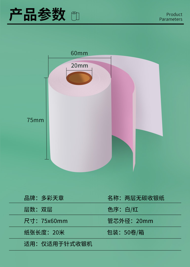 新绿天章 两层无碳 75mm*60mm 50卷 两层无碳打印收银纸 白色(单位:箱)