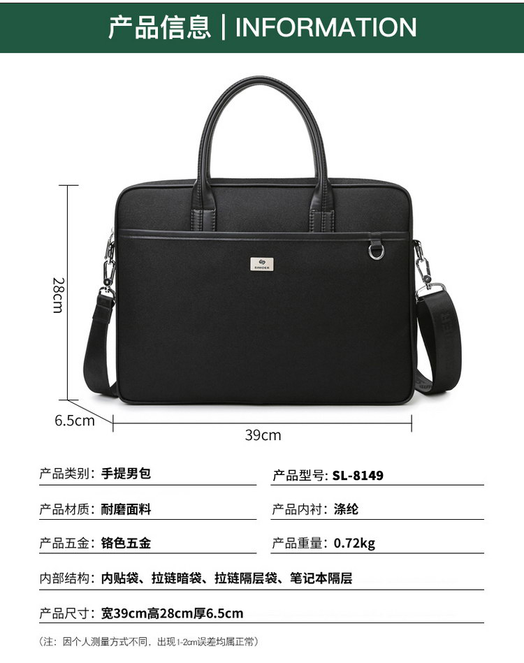 斯莫尔(SIMOER) SL-8149 39CM*28CM*6.5CM 公文包 黑色(单位:个)