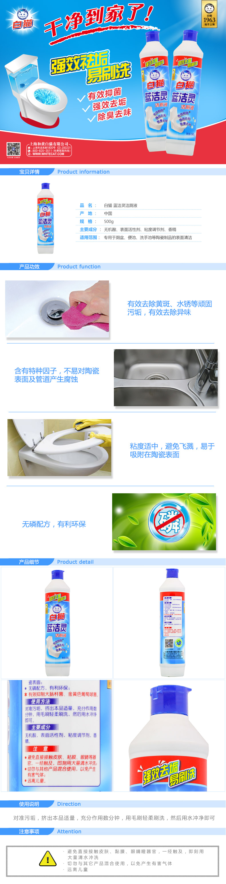 白猫 C41320700 0.5kg 强力洁厕液 水蓝色(单位:瓶)