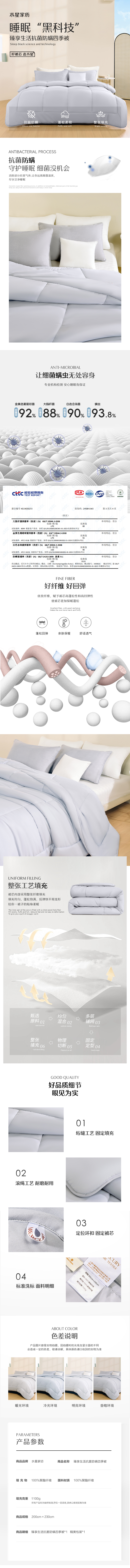 水星家纺 129257 200cm*230cm 臻享生活抗菌四季被 灰色(单位:床)