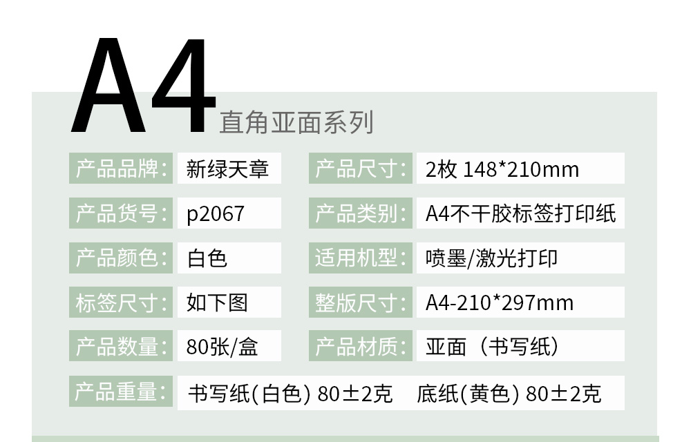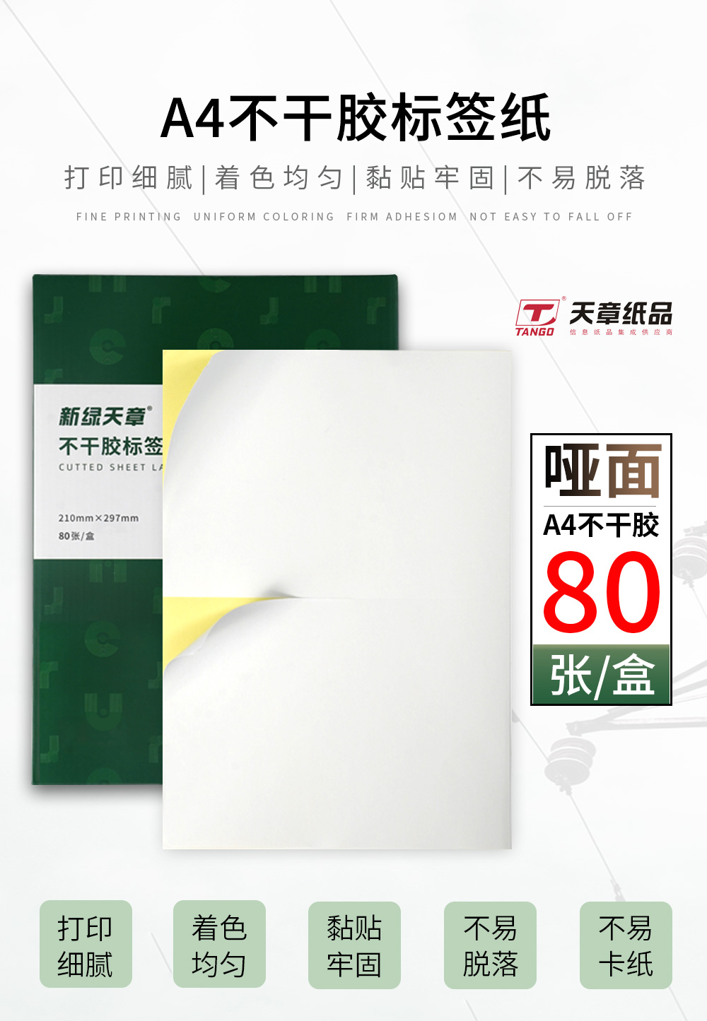 天章 (TANGO) P2067 210mm*148mm 2枚/张*80张 不干胶哑面黄底 白色(单位:盒)