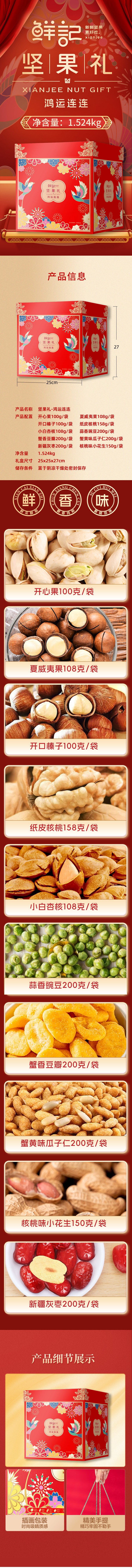 鲜记 鸿运连连 1524g 坚果礼 红色(单位:盒)