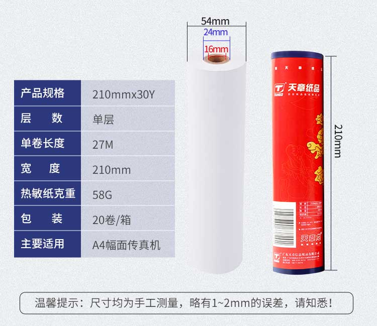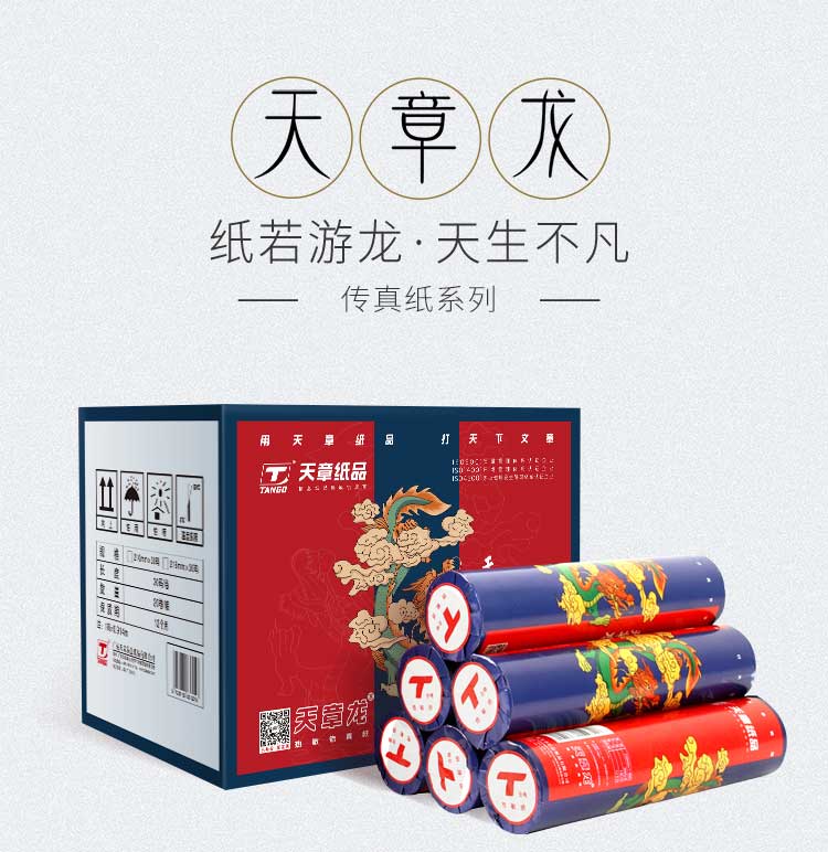 天章龙 210*30Y 58G 20卷/箱 通用传真机打印纸 热敏传真纸 白色(单位:箱 )