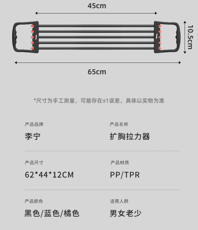 李宁(LI-NING) LJSP393 64*44*12mm 拉力器 黑色(单位:个)