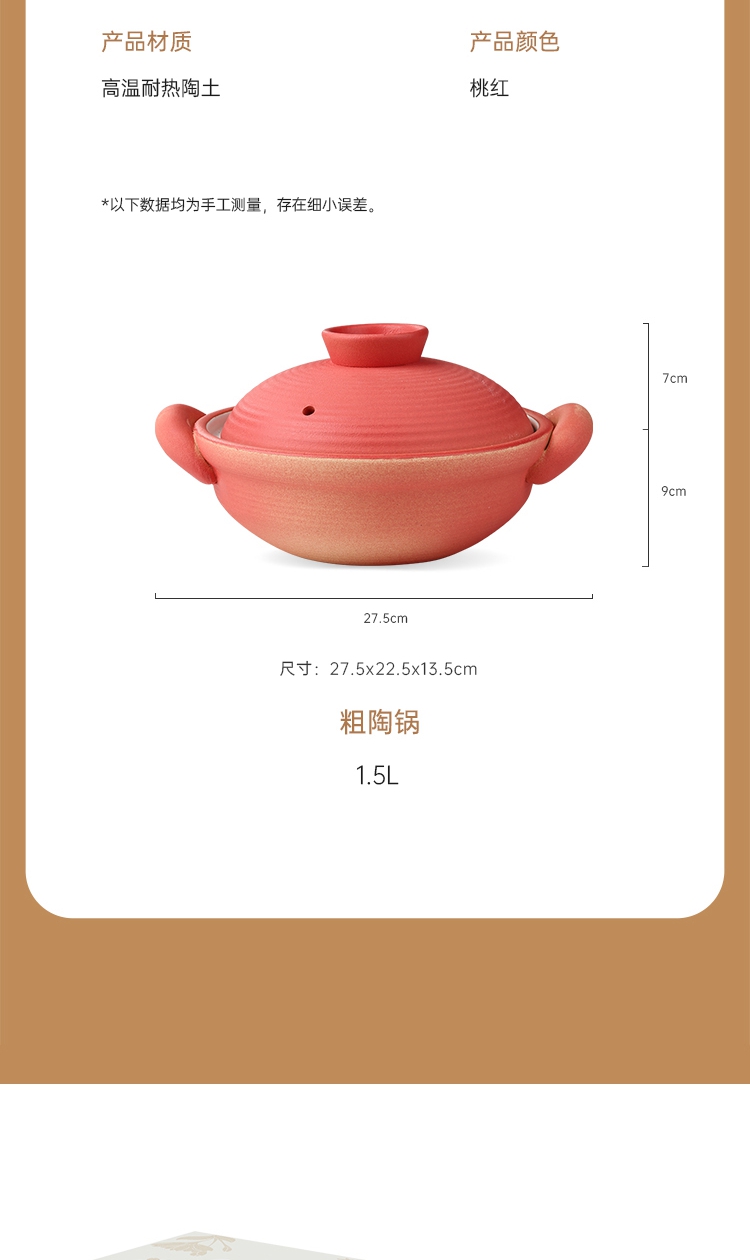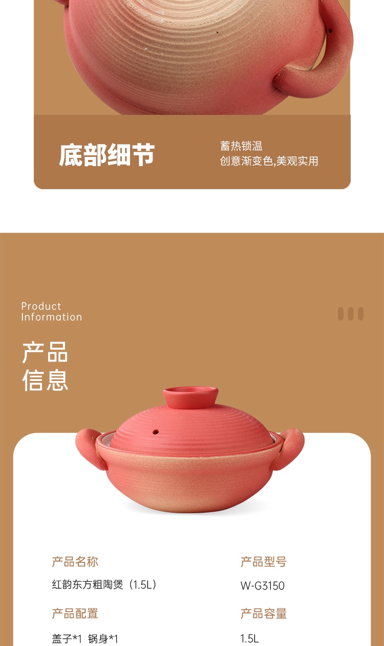 唯都 W-G3150 1.5L 粗陶煲 一锅多用 桃红(单位:个)