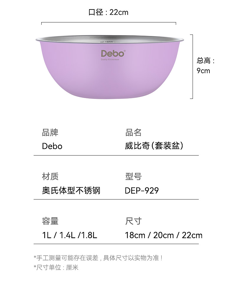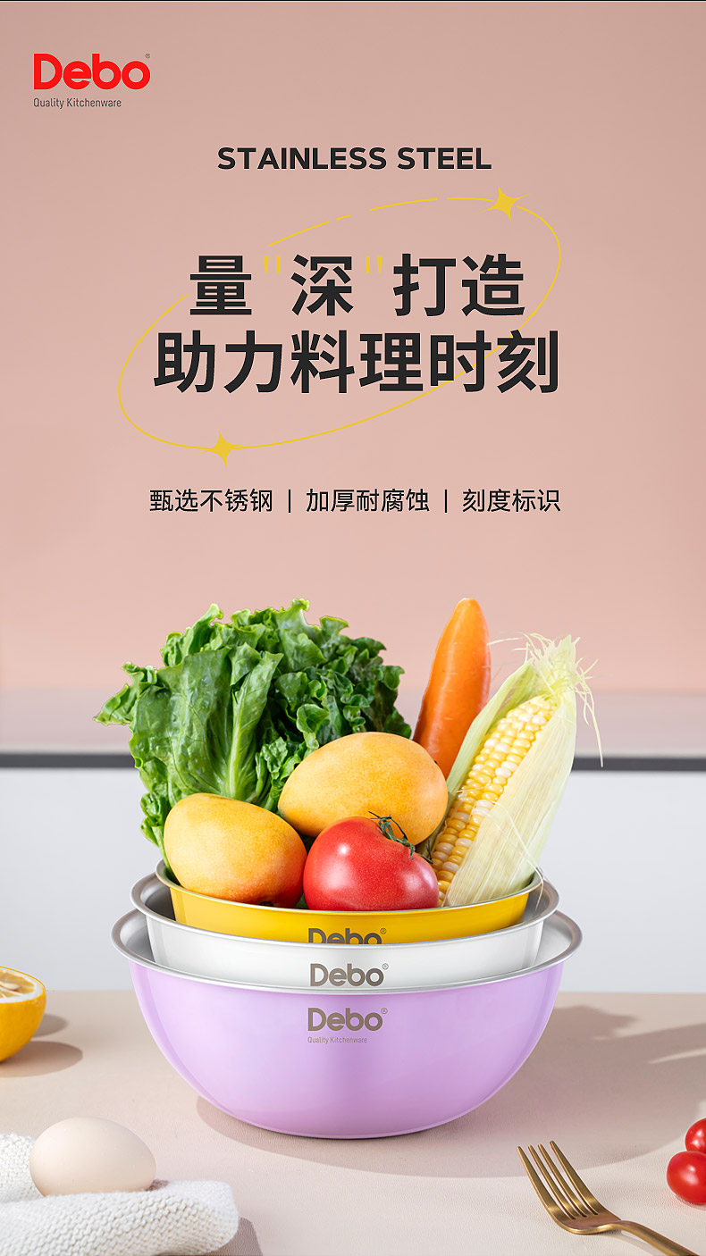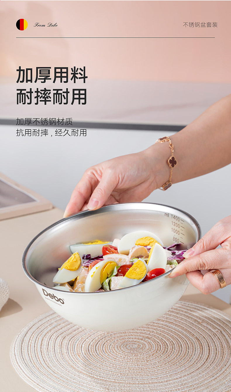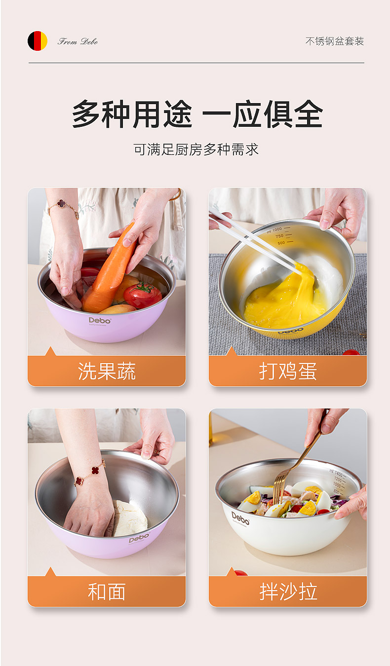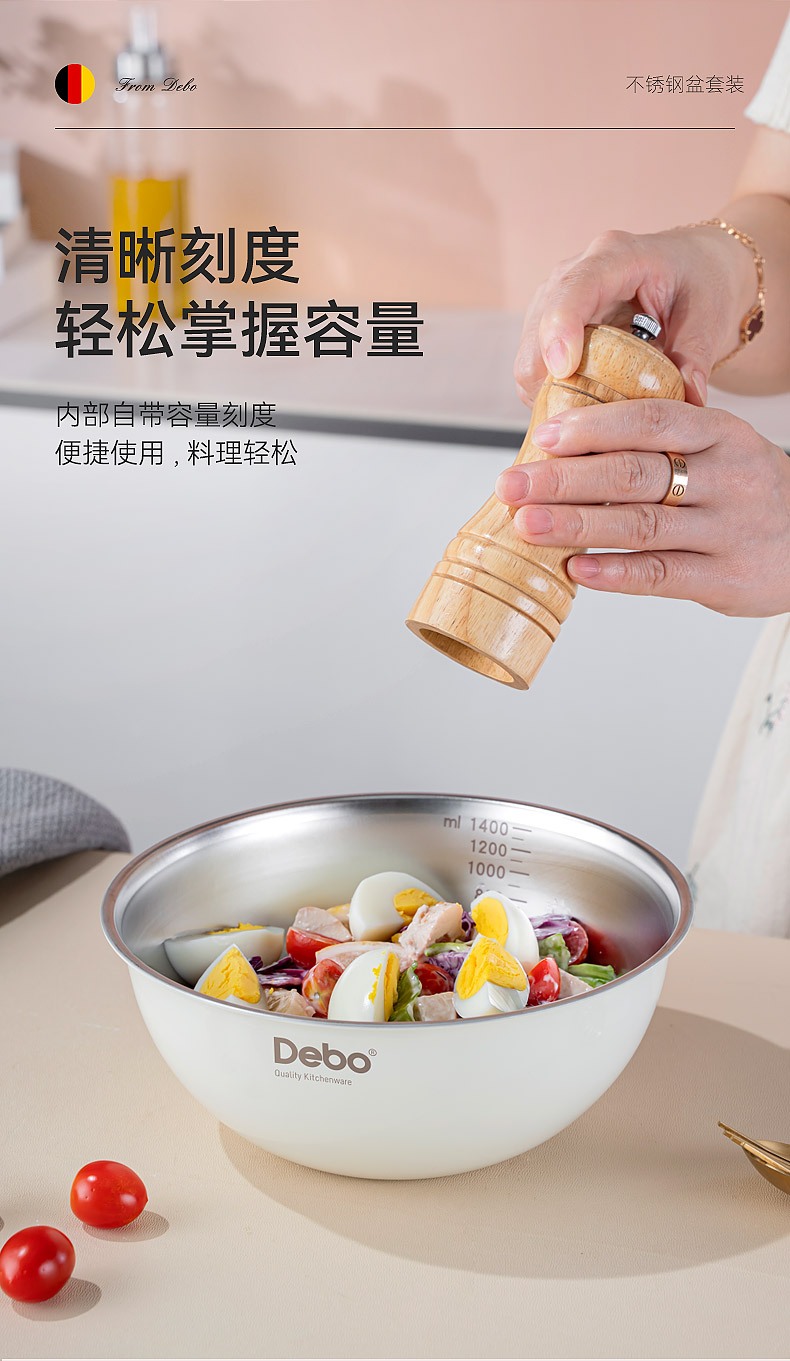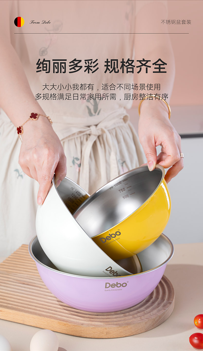 德铂(Debo) dep-929 套装3盆 厨房用具不锈钢 混色(单位:套)