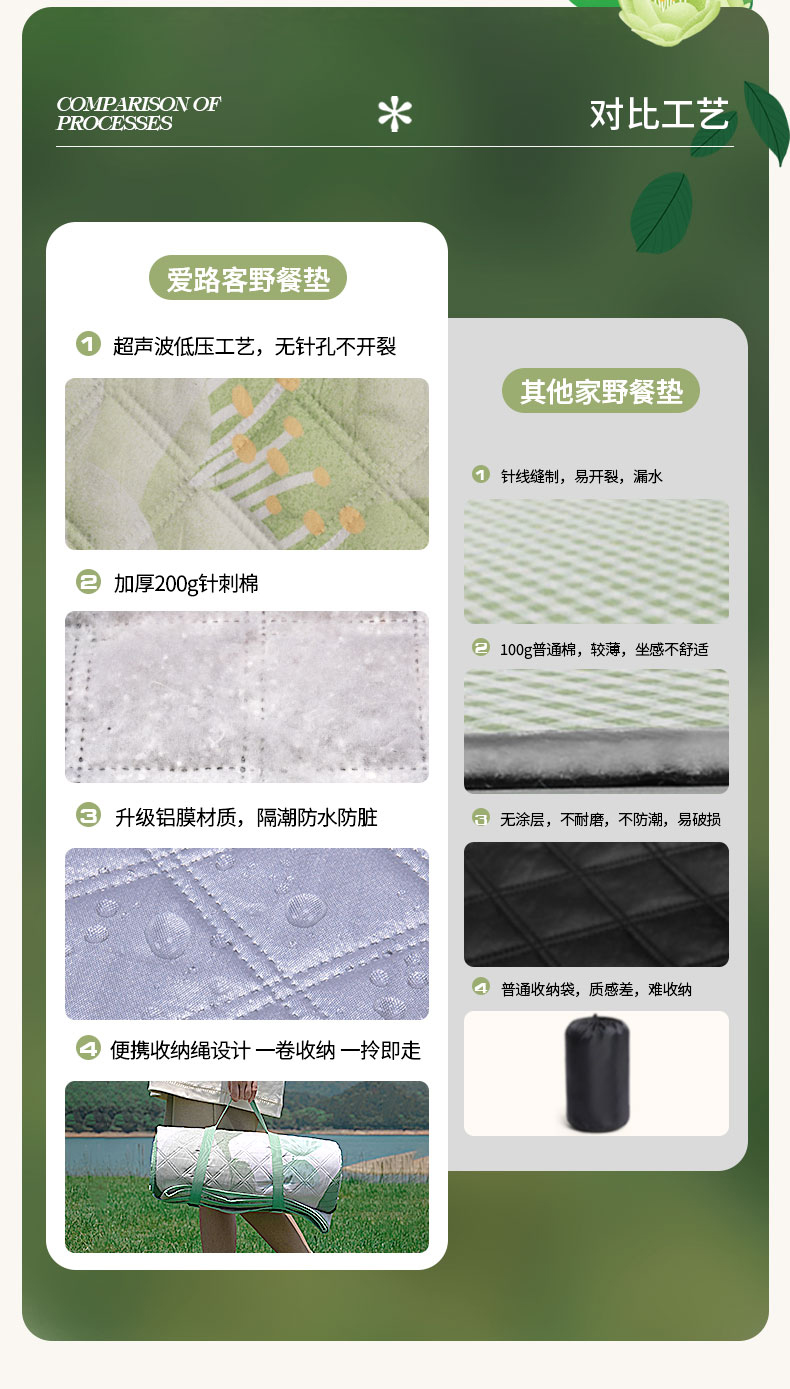 爱路客 OT-187 180*200cm 爱路客户外防潮地垫 灰绿色(单位:件)