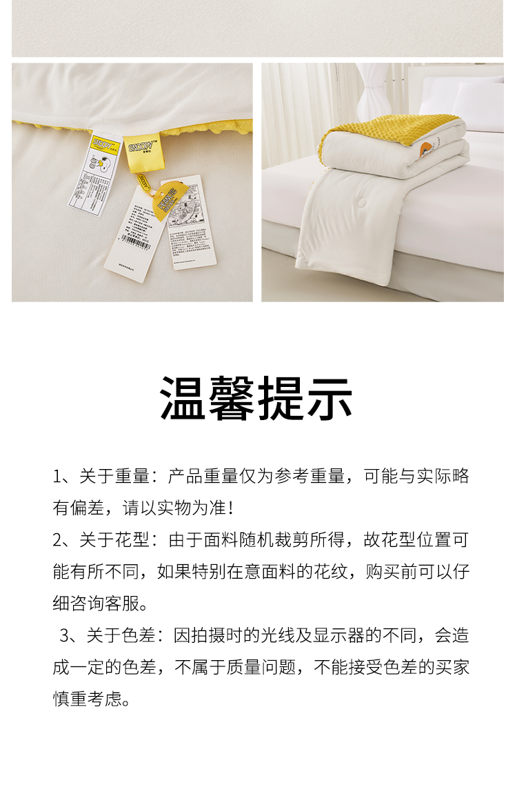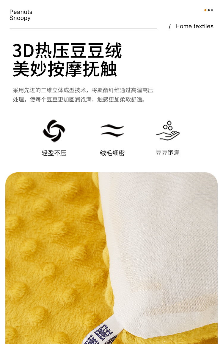 史努比 SND03-2023B 200*230cm 3D安抚豆豆功能被 200*230cm 香槟黄(单位:条)