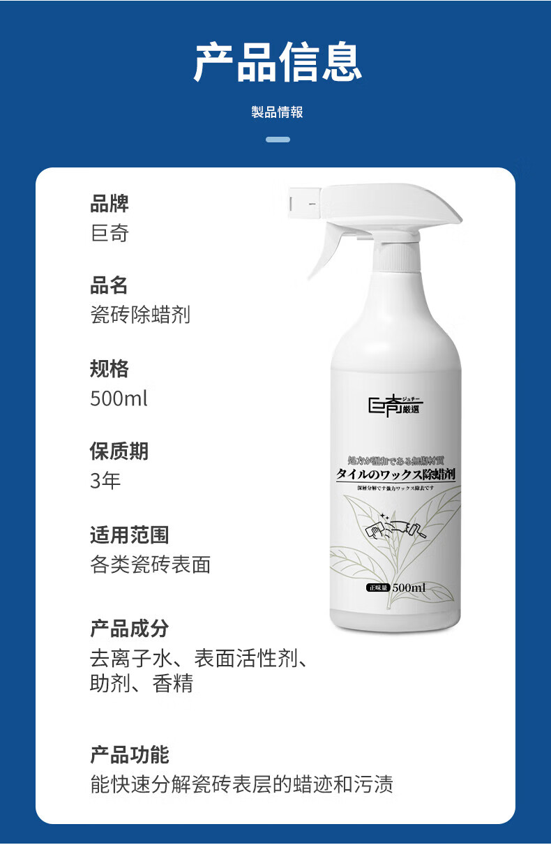 巨奇(JUQI) 瓷砖除蜡剂 500ml 去蜡抛光增亮 蓝色(单位:瓶)