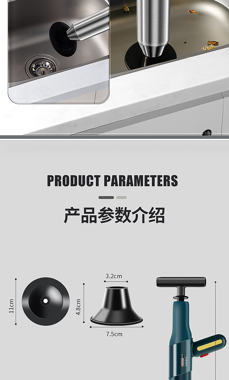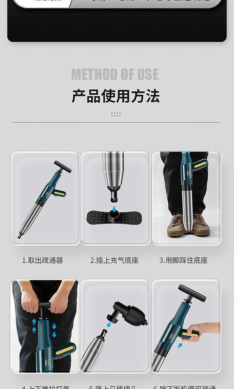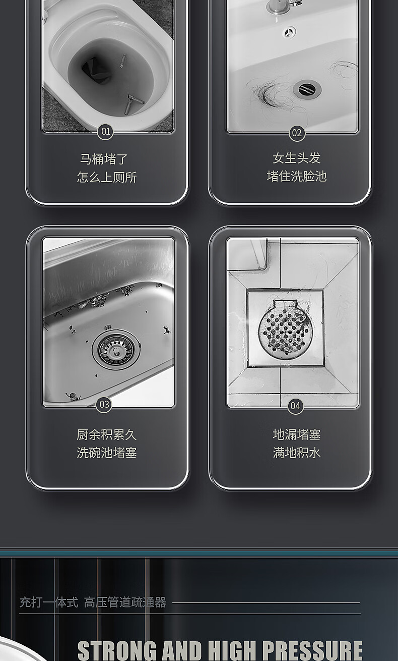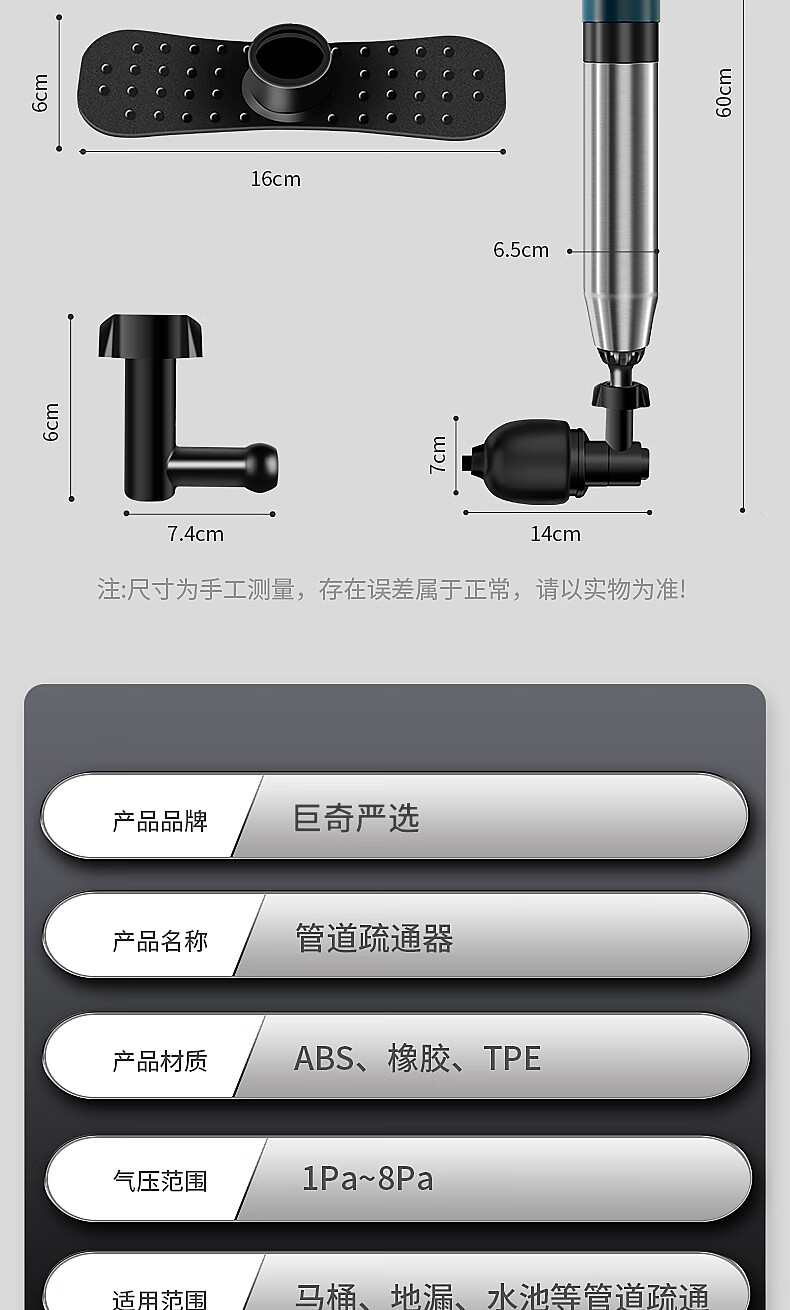 巨奇(JUQI) 管道疏通器不锈钢款 60cm 一炮通下水道疏通器 黑色(单位:个)