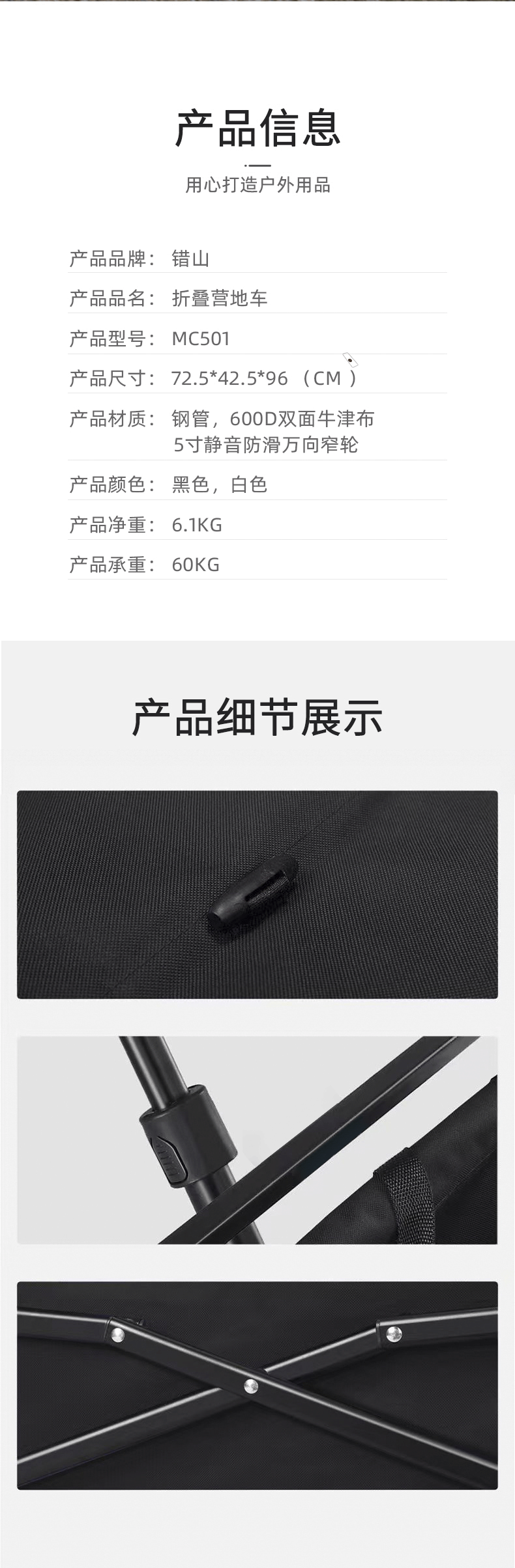 错山(MOUNTAIN EXPLORER) MC501 72.5*42.5*96CM 可折叠营地车 米色(单位:台)