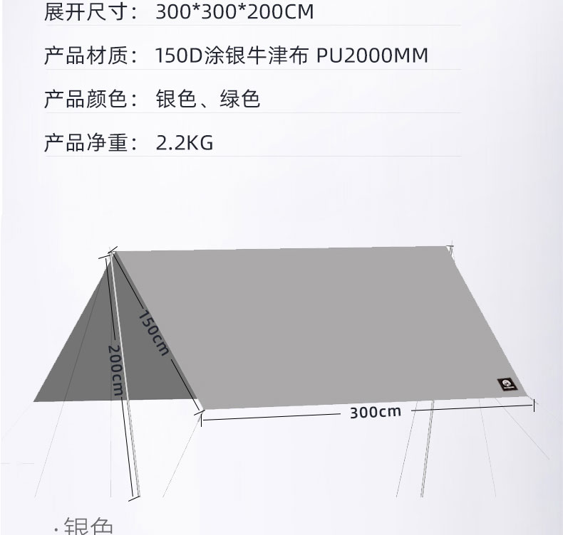 错山(MOUNTAIN EXPLORER) MS808 2.2KG 方形天幕 绿色(单位:顶)