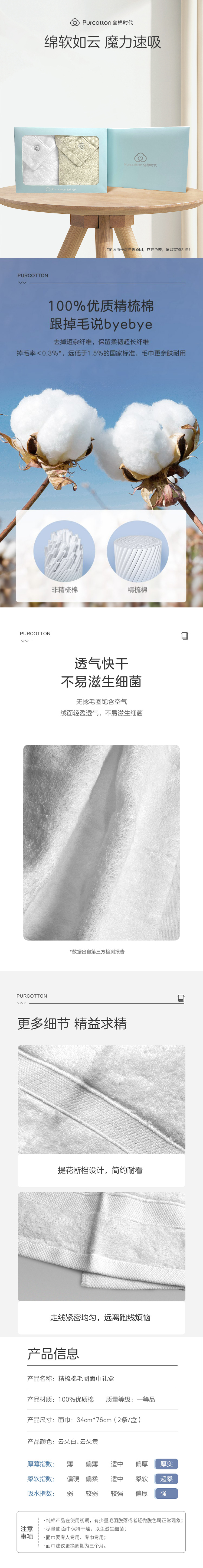 全棉时代成人双面毛圈毛巾(2条盒装)云朵系列 随机