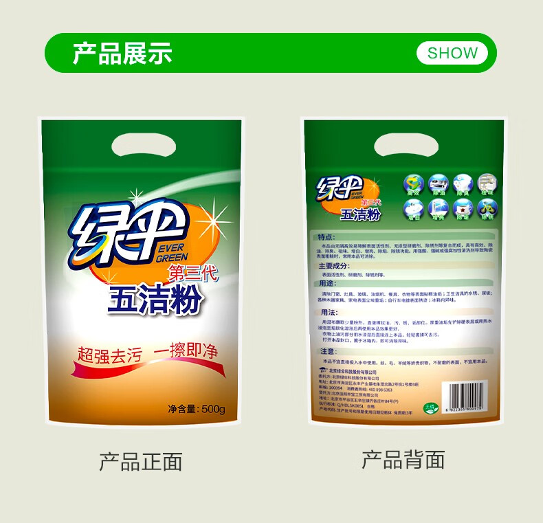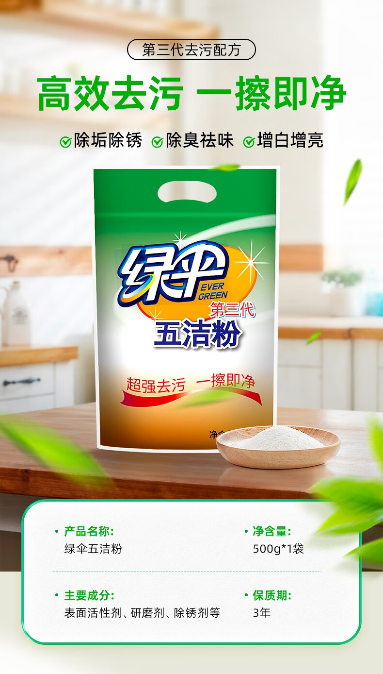 绿伞 去污五洁粉 500g 超强去污一擦即净 混色(单位:袋)