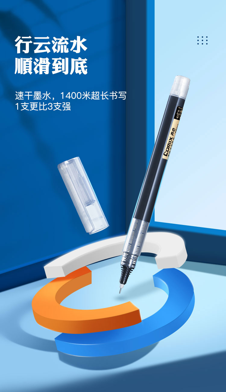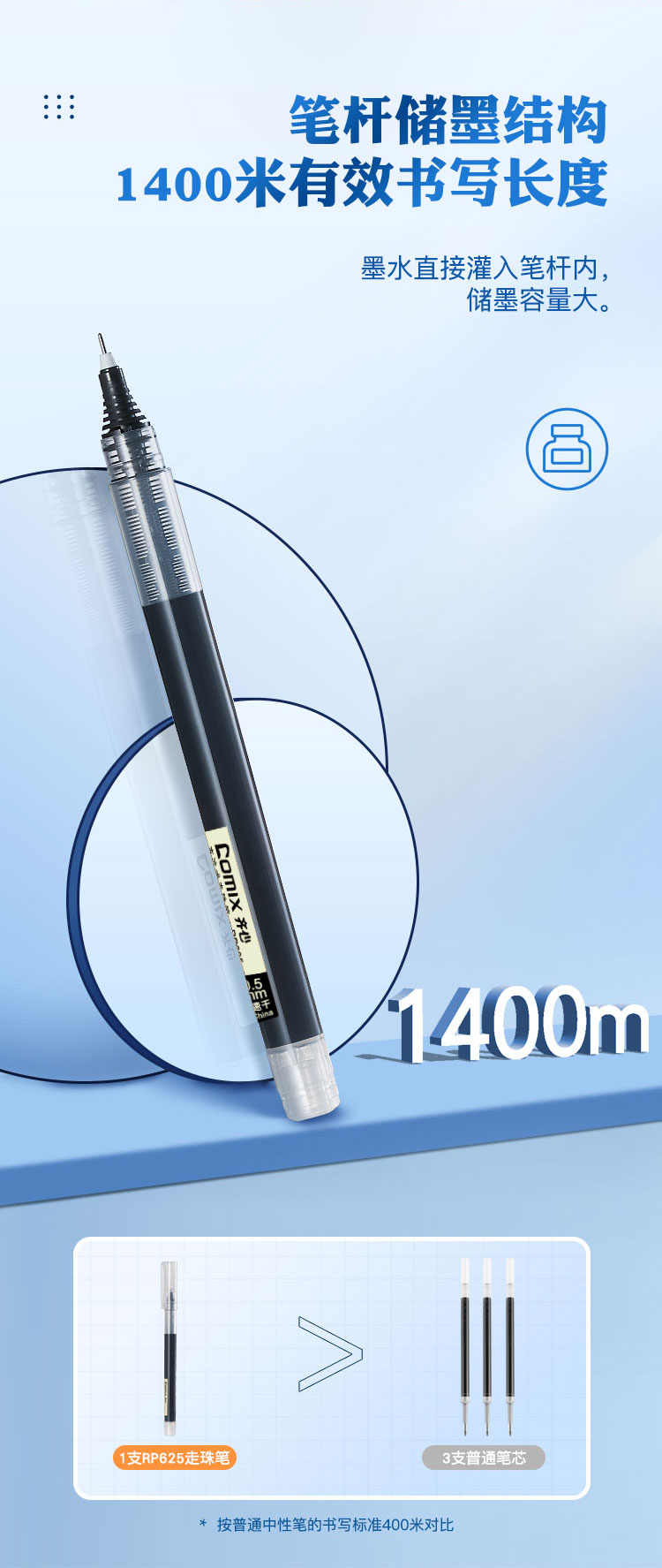 齐心(COMIX) RP625 12支 直液式走珠笔 黑色(单位:盒)