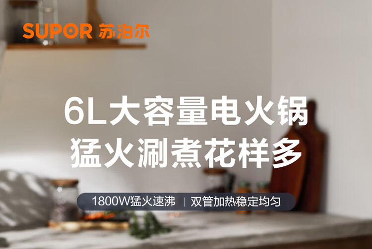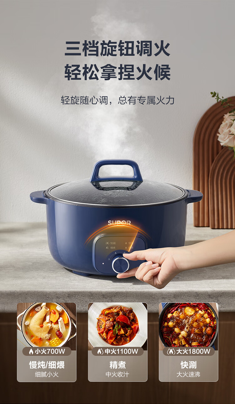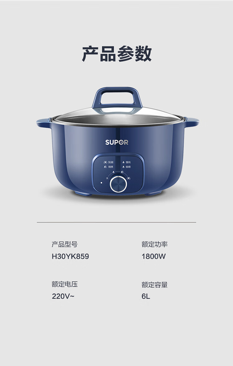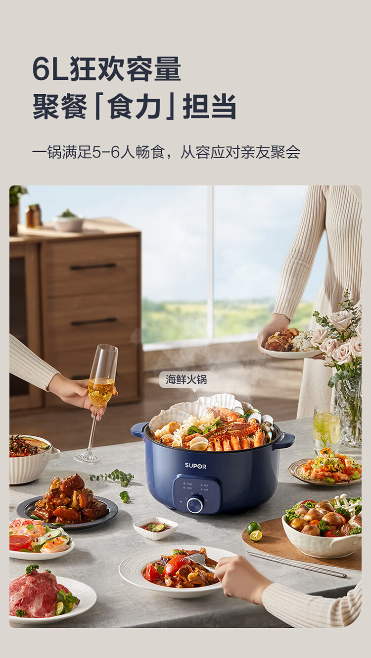 苏泊尔(SUPOR)连体电火锅6L多用途锅 H30YK859/台 蓝色