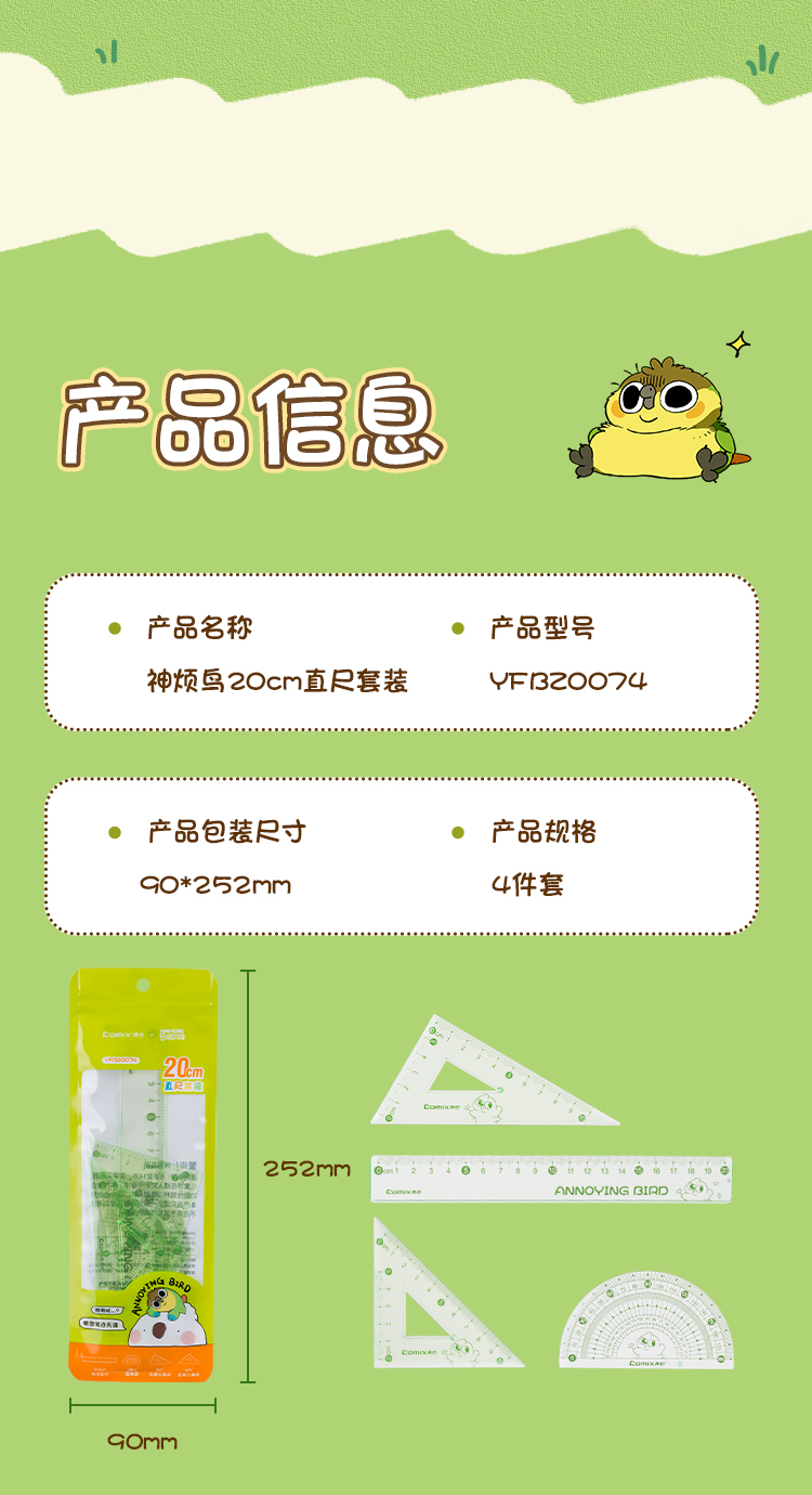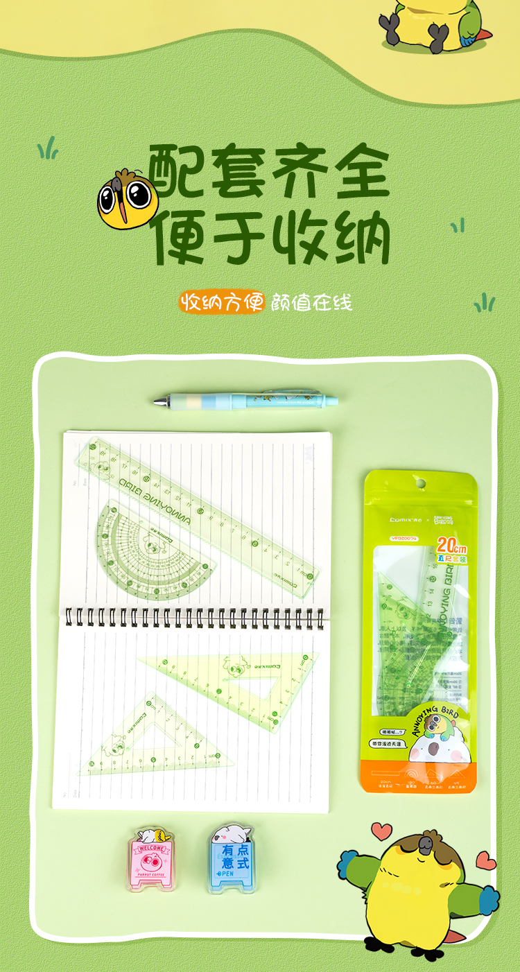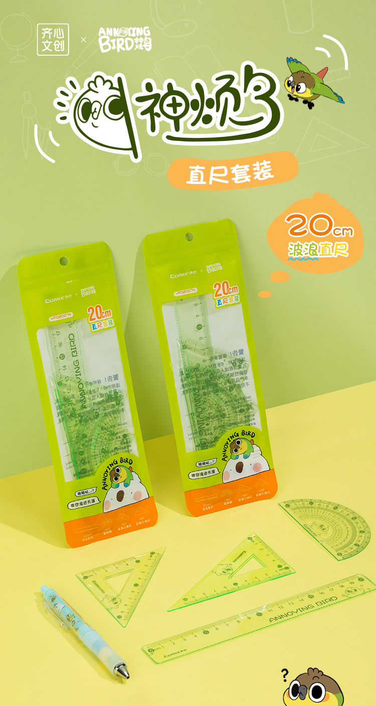 齐心(COMIX) YFBZ0074 直尺套装 神烦鸟 直尺 绿色(单位:套)