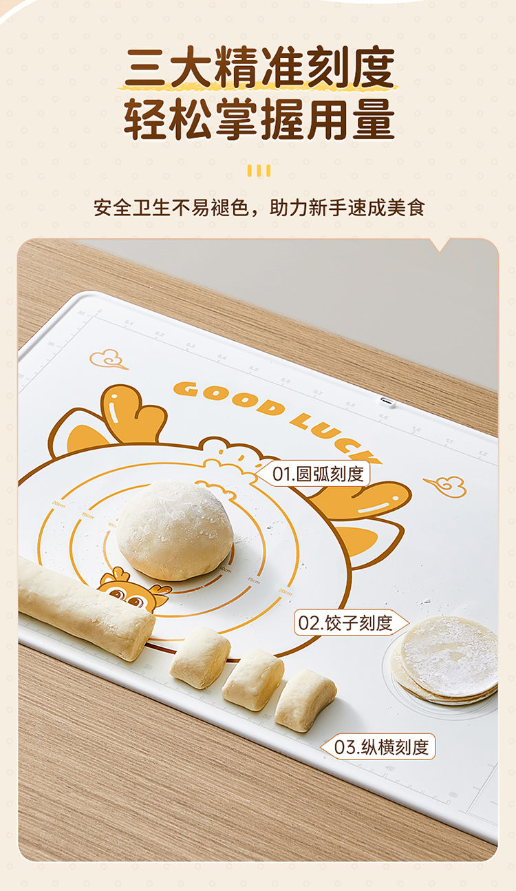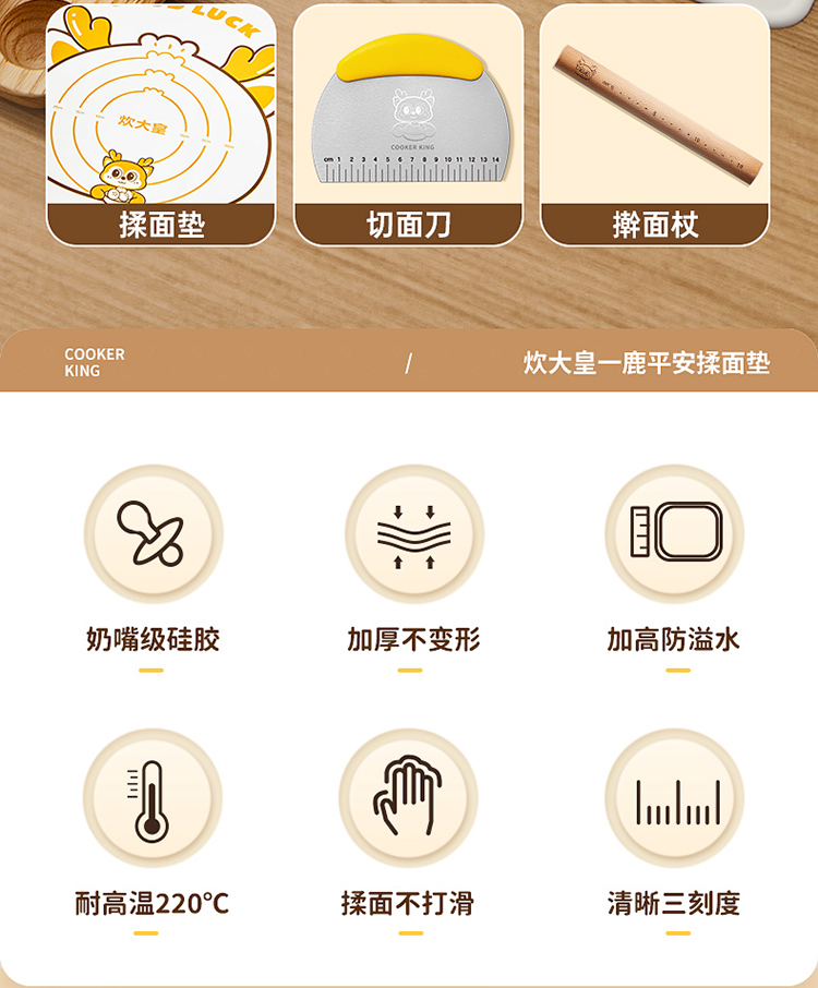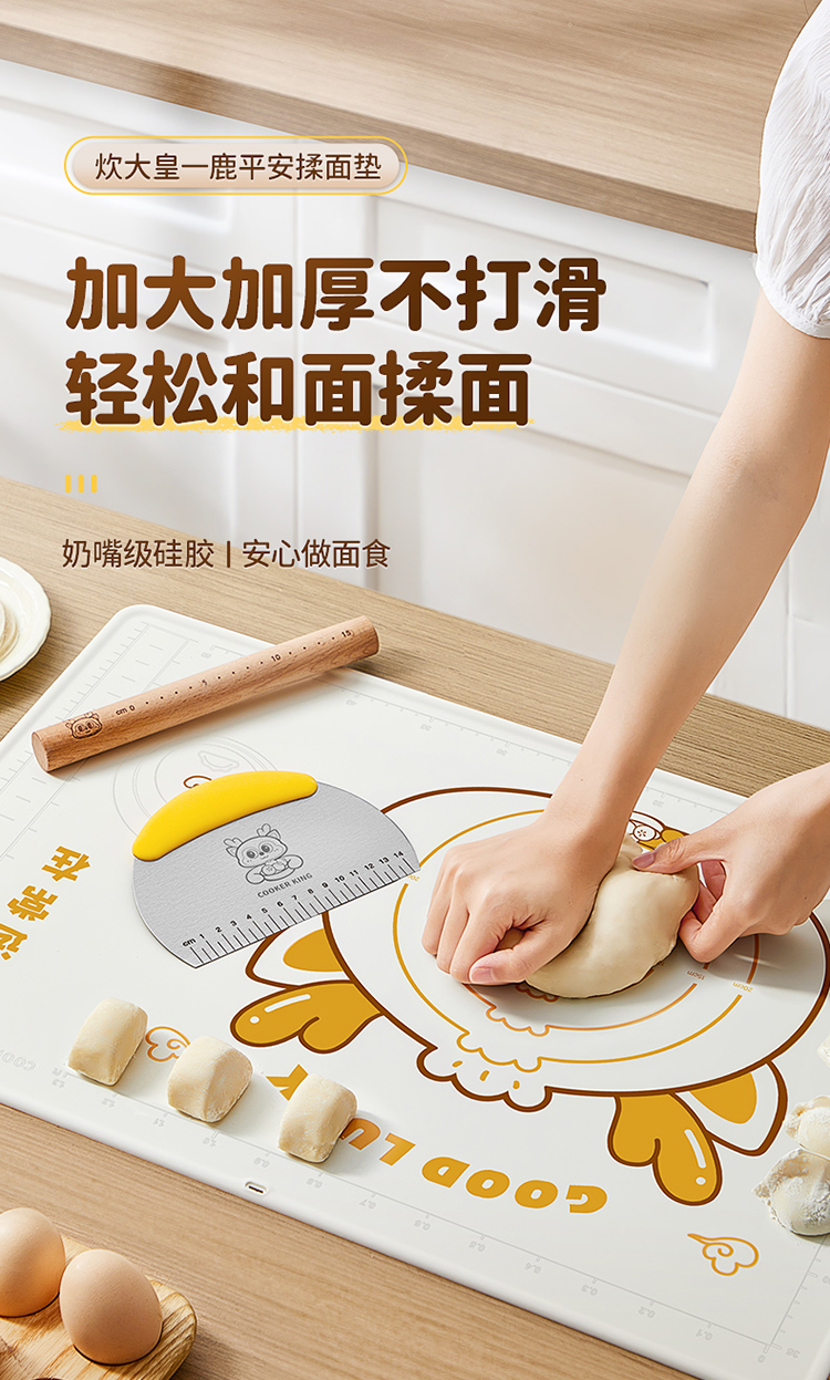 炊大皇 RM24XL 擀面杖+切片刀+揉面垫40*60+彩盒 一鹿平安揉面垫 白色(单位:盒)
