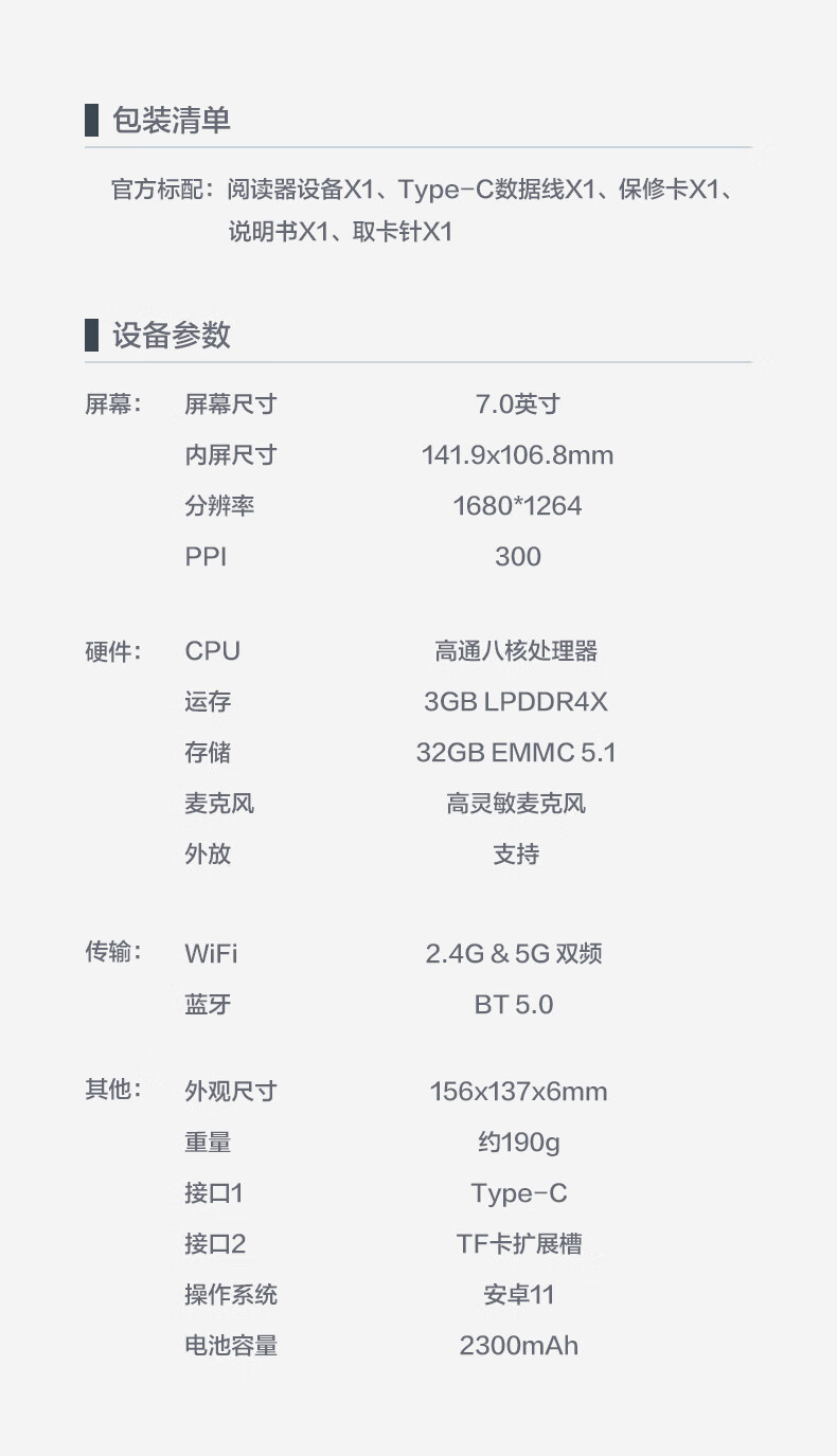 文石 Leaf3 7英寸 墨水屏便携阅读机 黑色(单位:台)