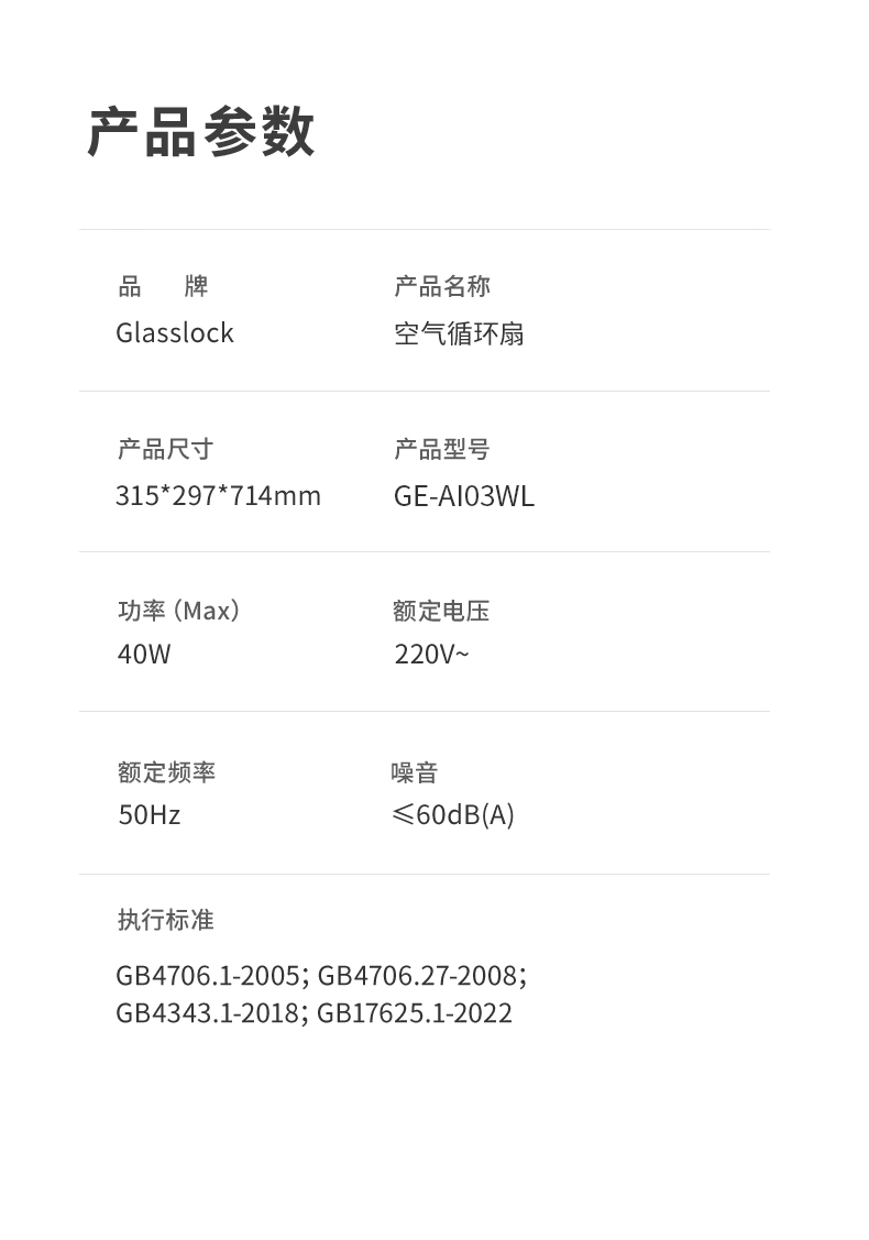 GLASSLOCK 循环扇 GE-AI03WL 220V/40w 白色(单位:台)