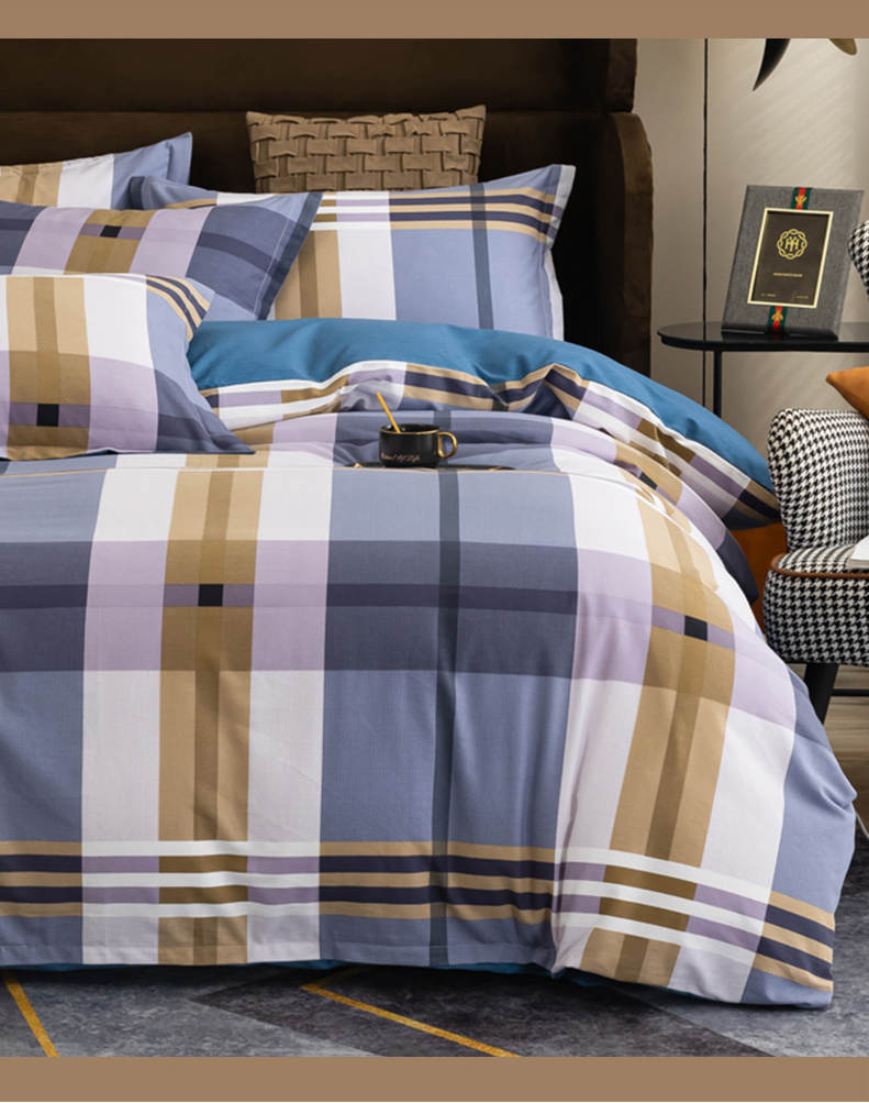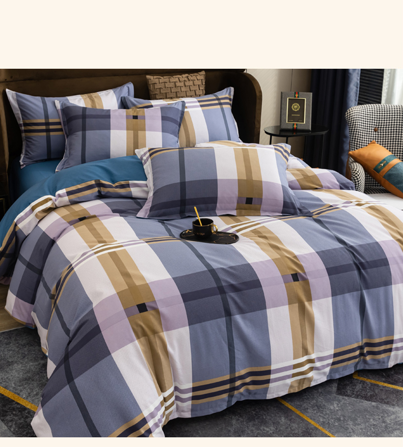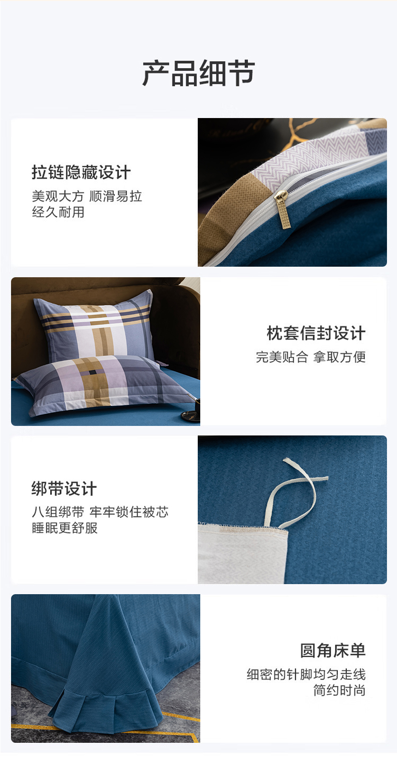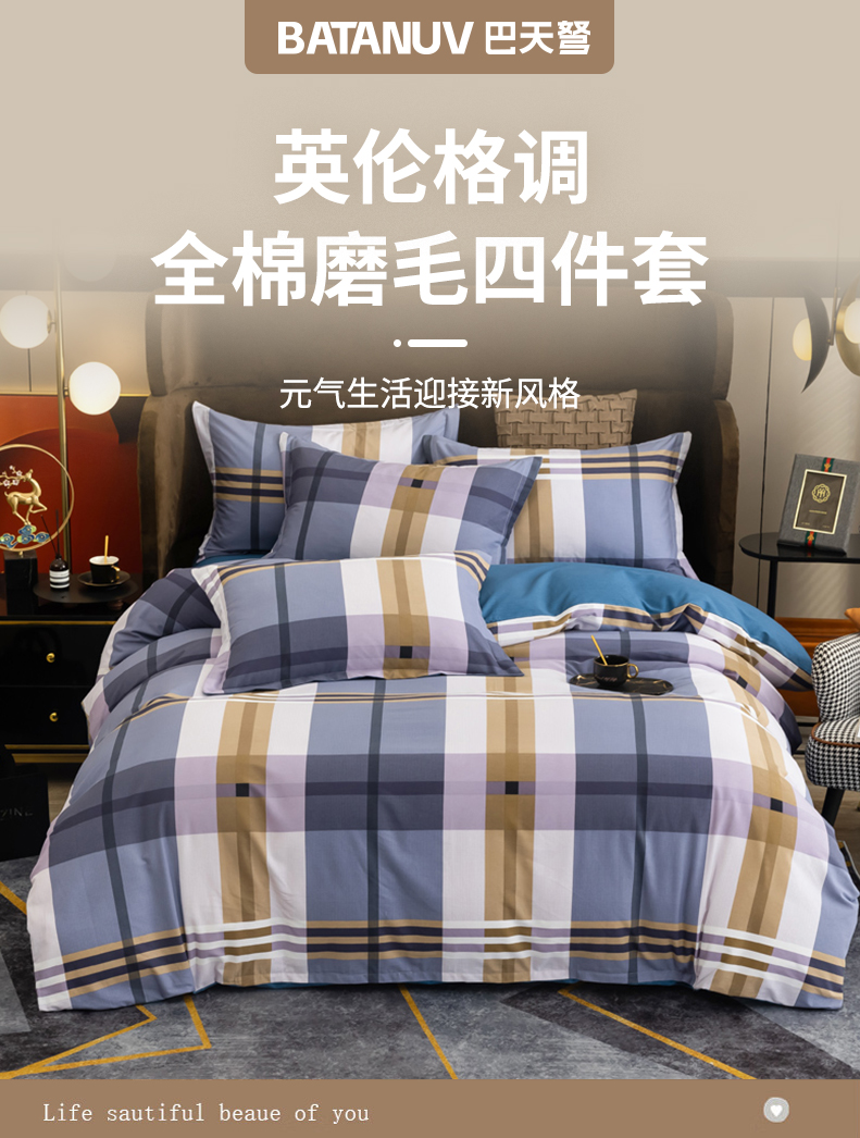 巴天弩(BATANUV) F-JF025 被套200*230cm床单245*250cm枕头48*74 全棉磨毛四件套英伦格 蓝色格子(单位:套)