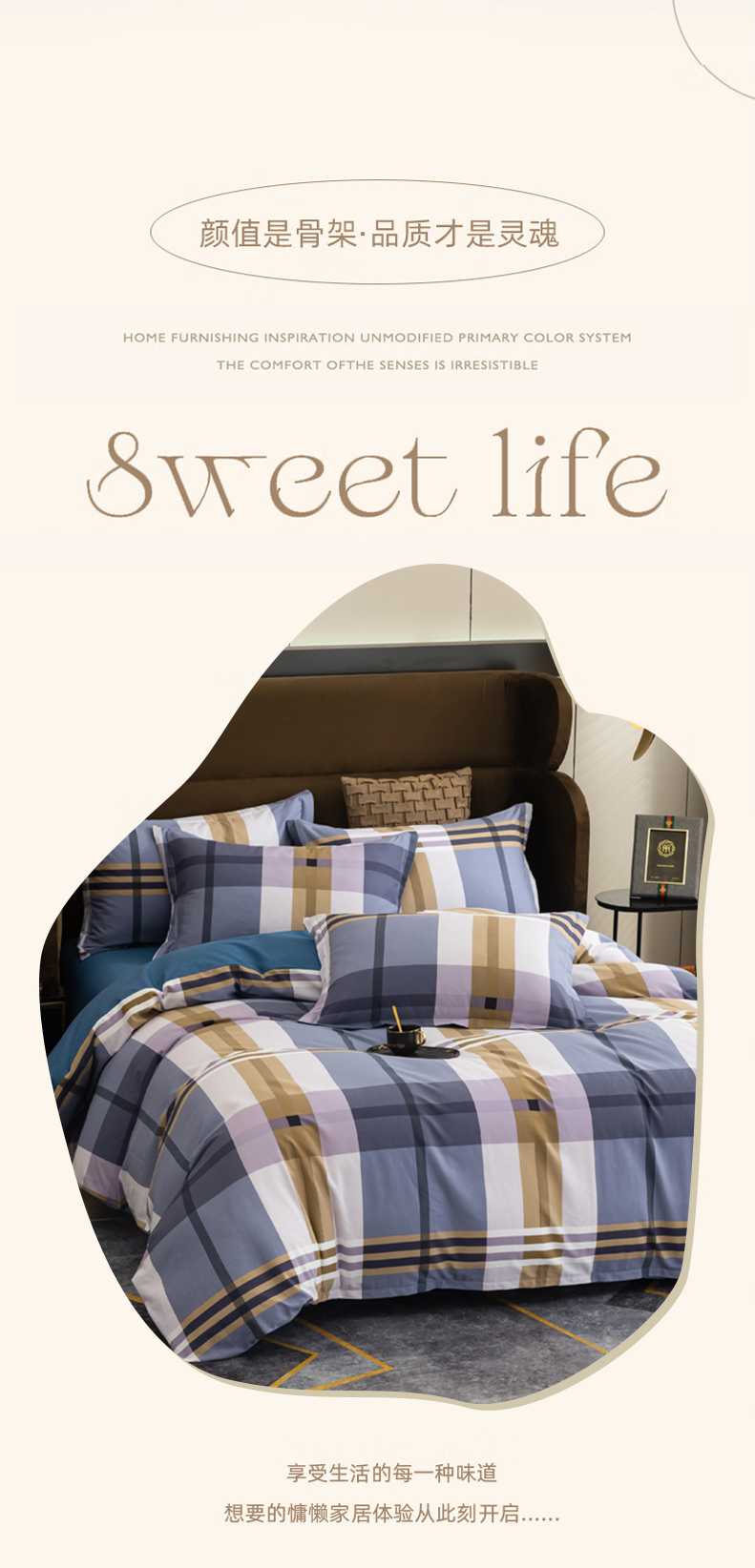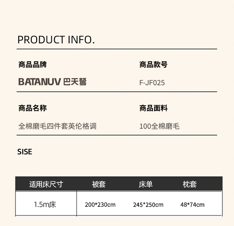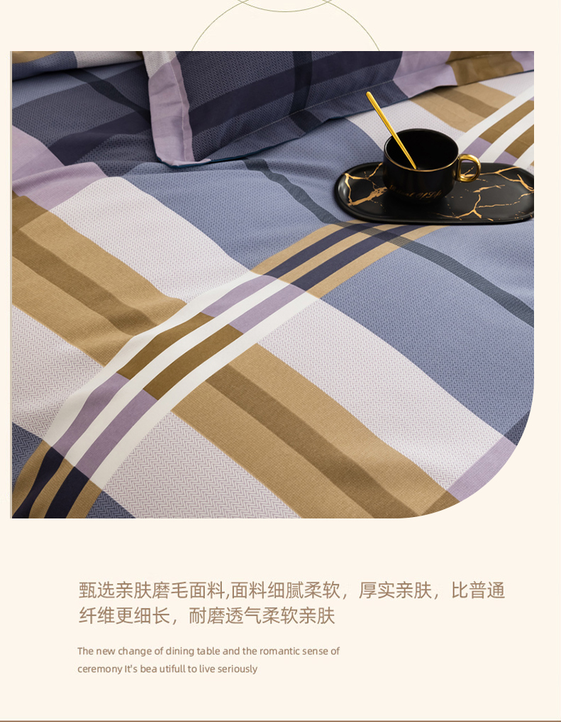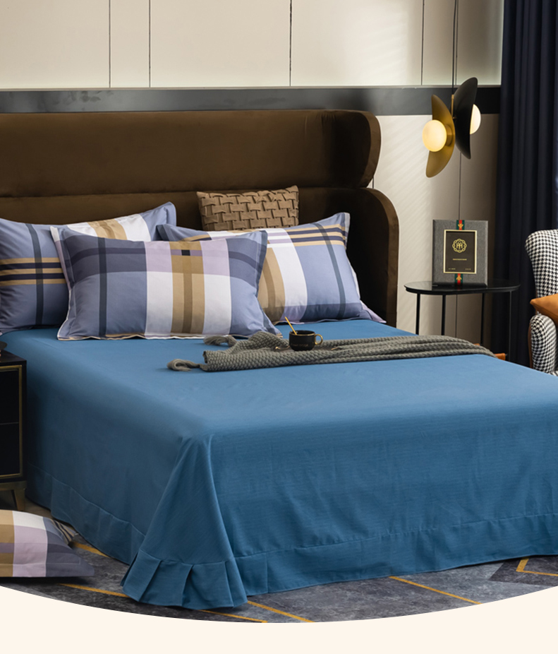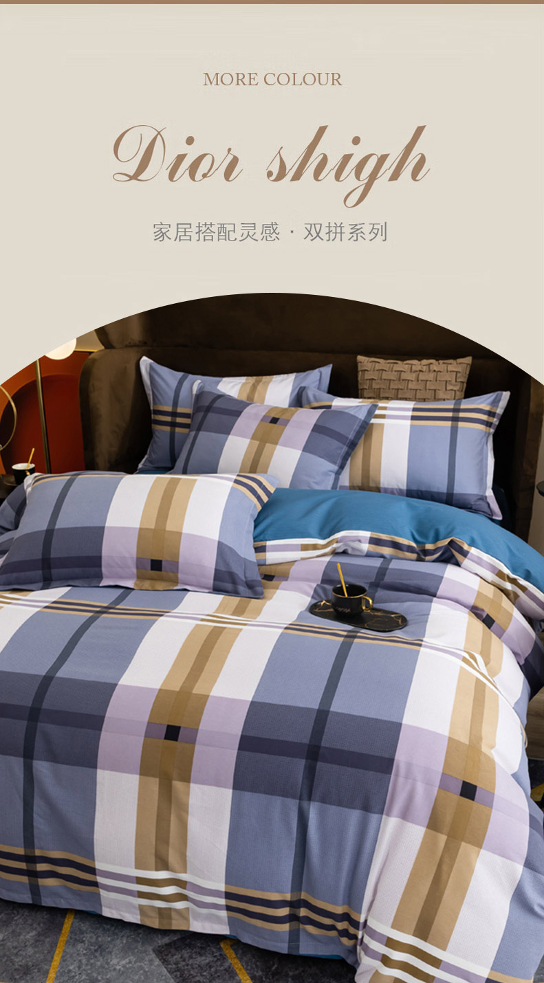 巴天弩(BATANUV) F-JF025 被套200*230cm床单245*250cm枕头48*74 全棉磨毛四件套英伦格 蓝色格子(单位:套)