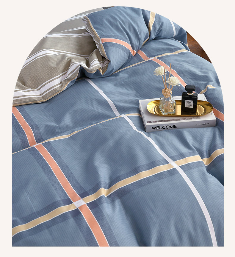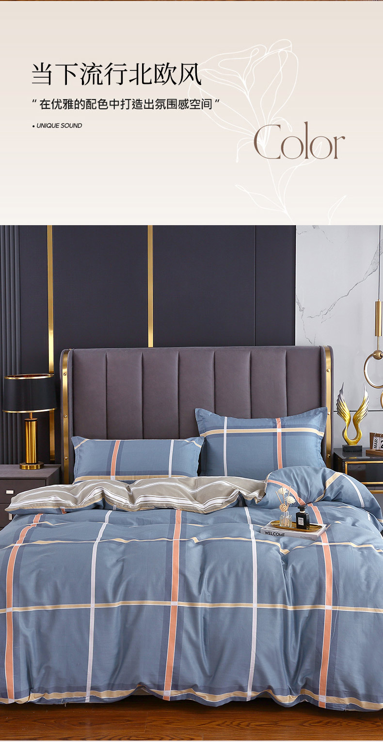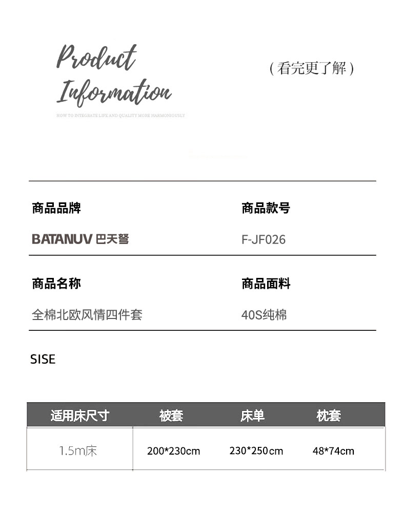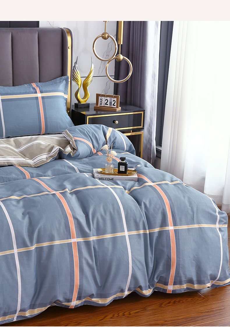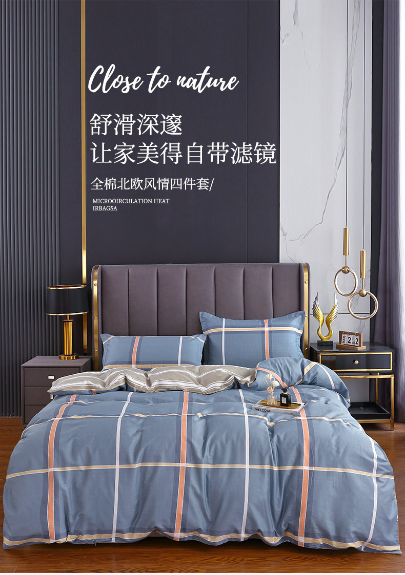 巴天弩(BATANUV) F-JF026 被套200*230cm床单230*250cm枕头48*74 全棉北欧风情四件套 蓝色格子(单位:套)
