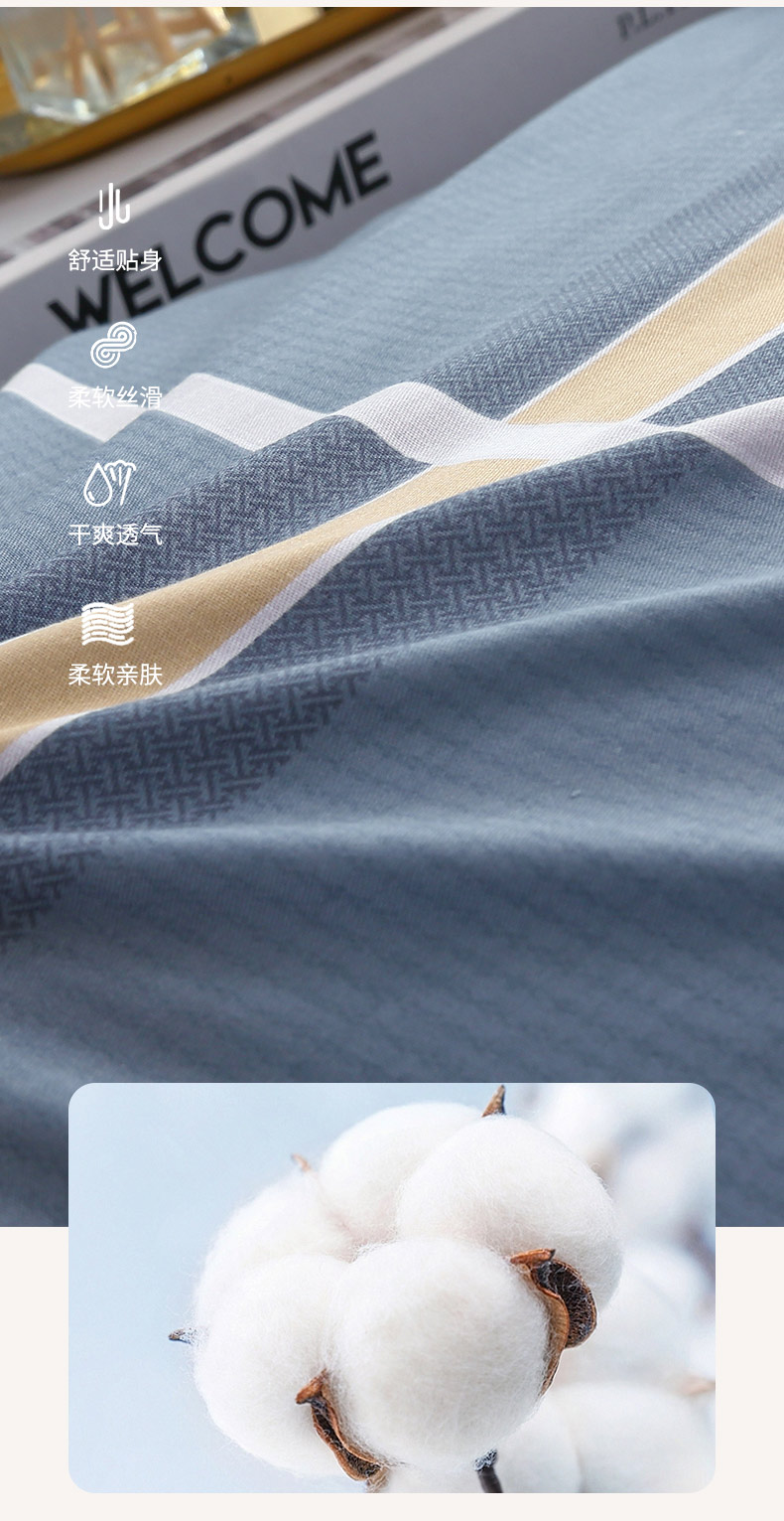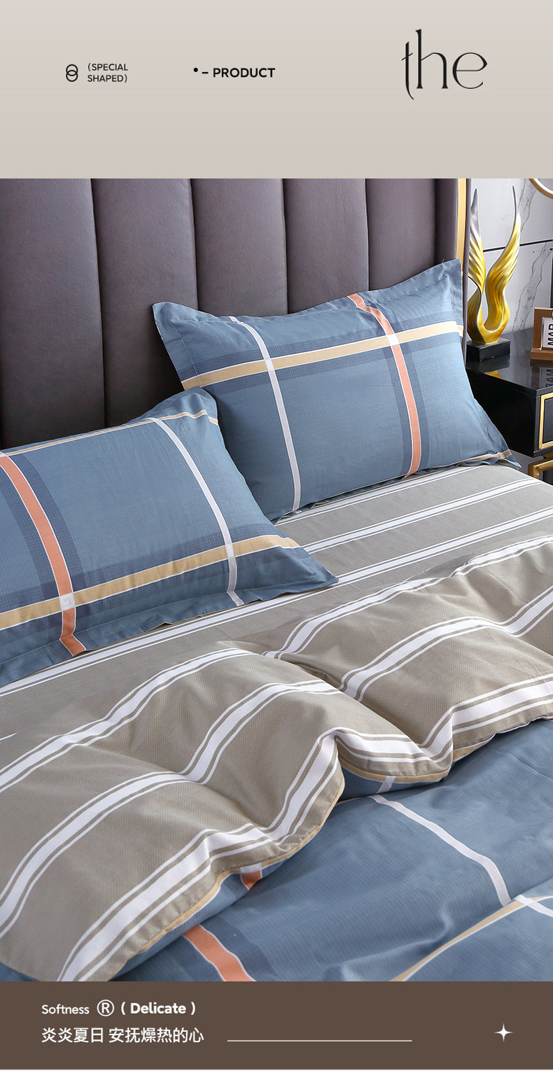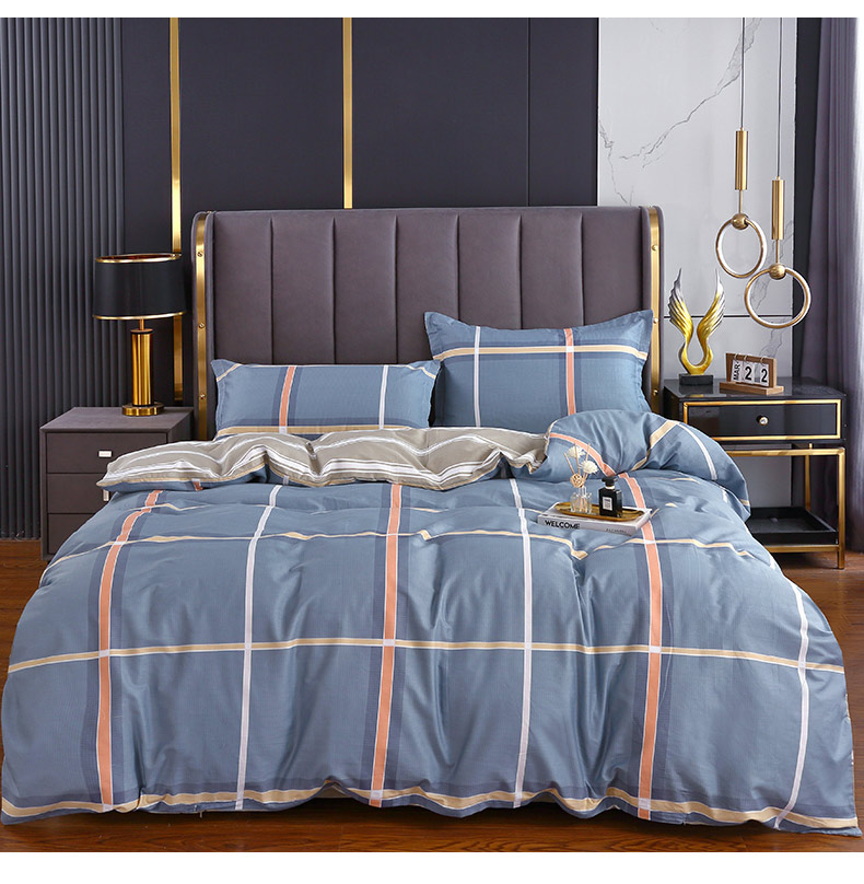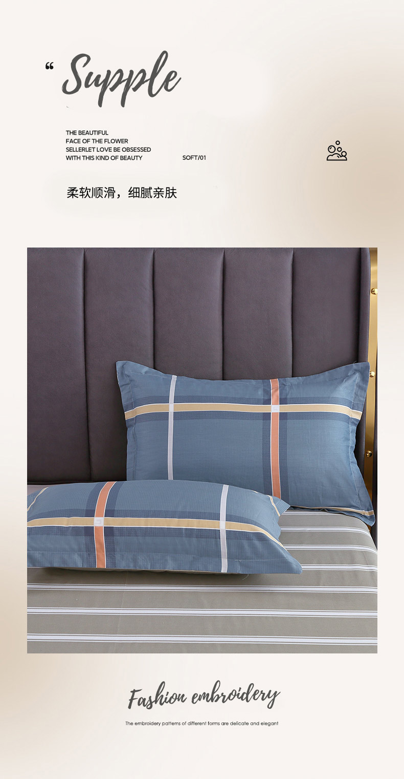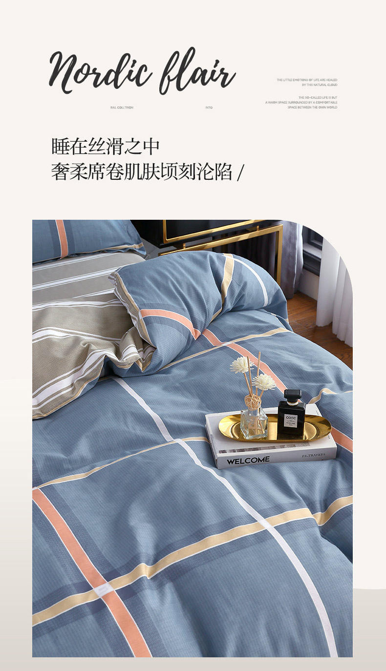 巴天弩(BATANUV) F-JF026 被套200*230cm床单230*250cm枕头48*74 全棉北欧风情四件套 蓝色格子(单位:套)
