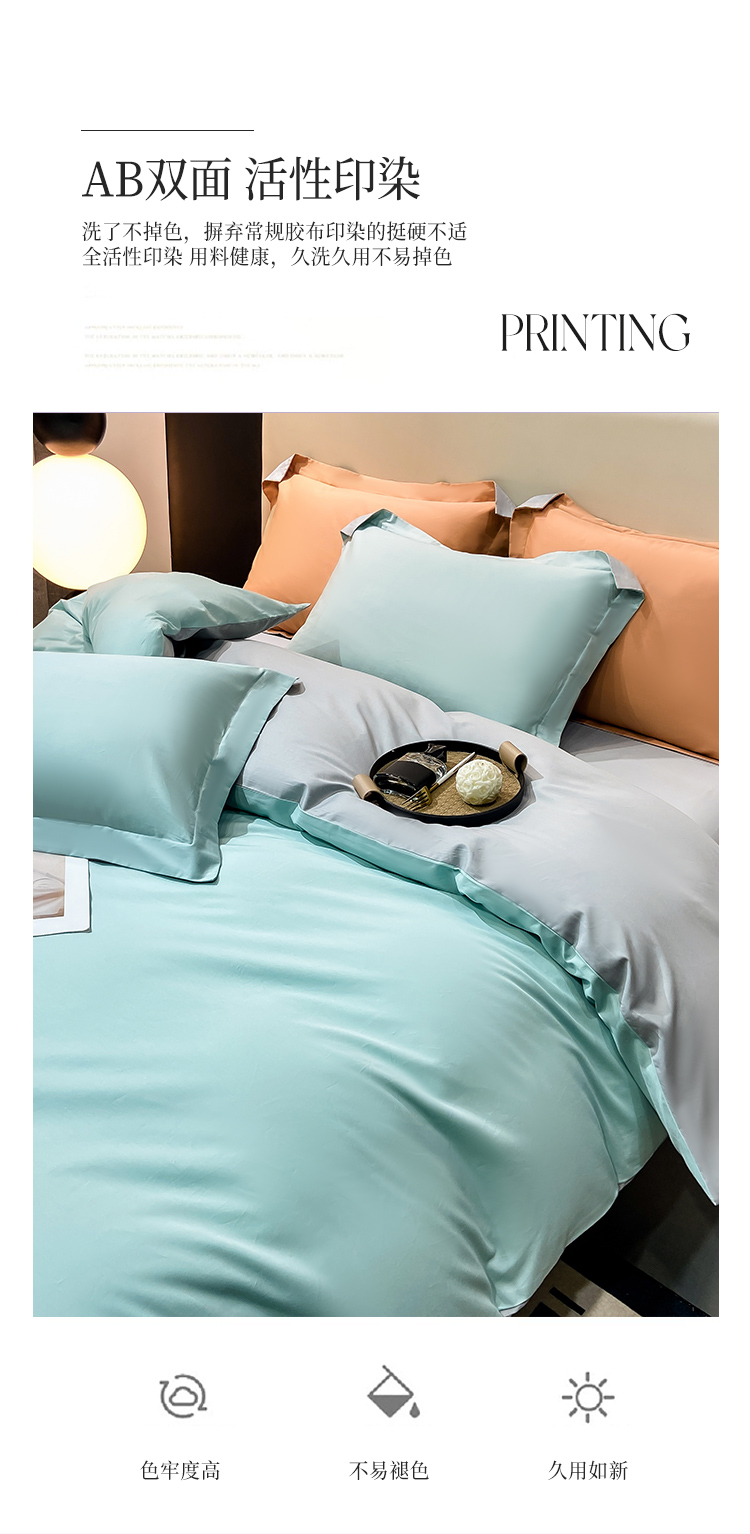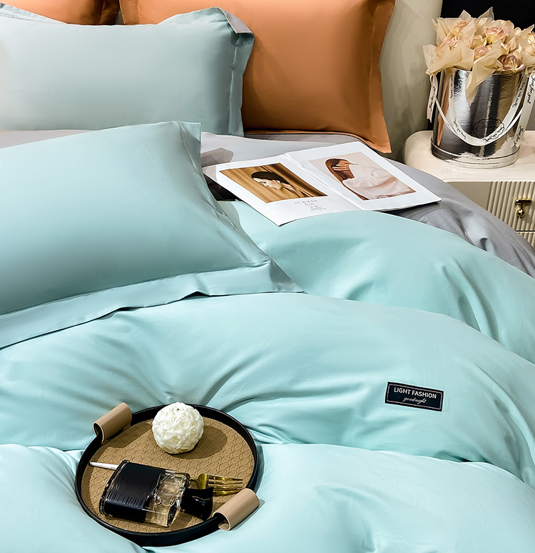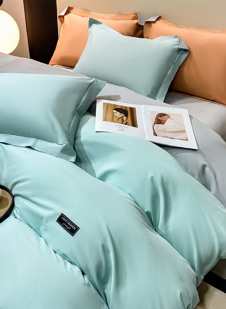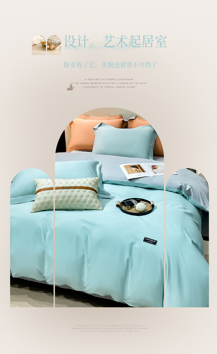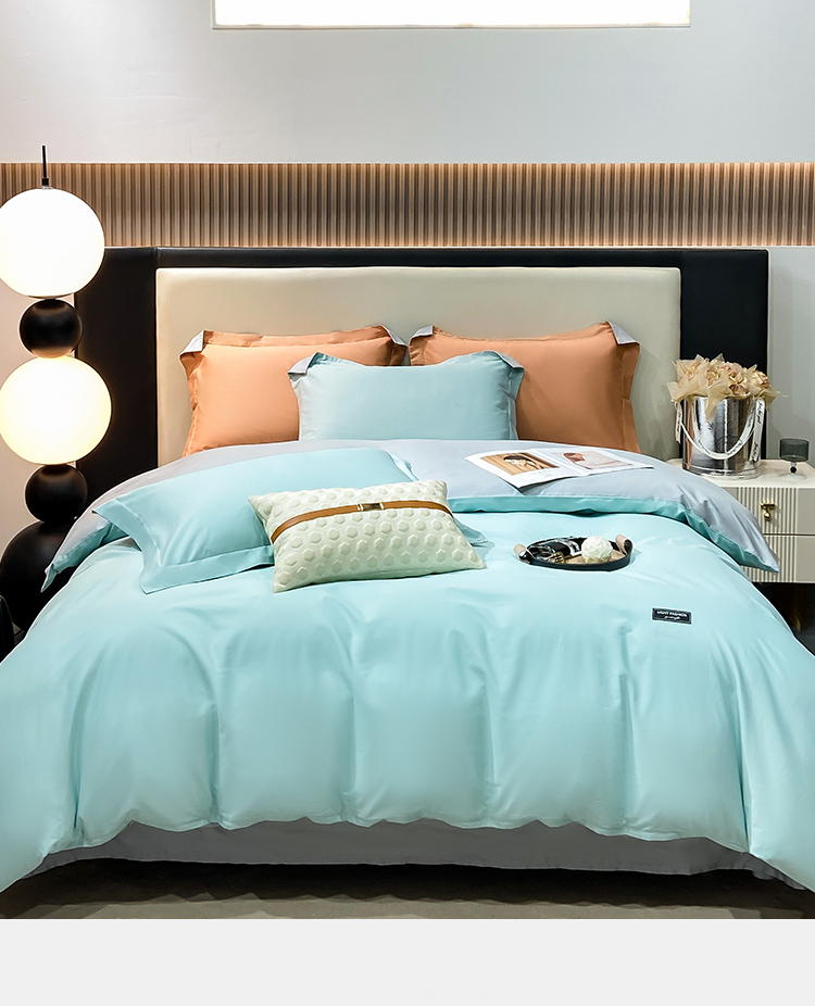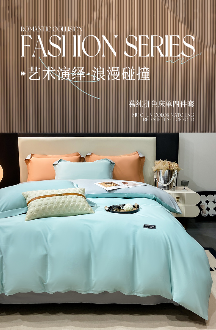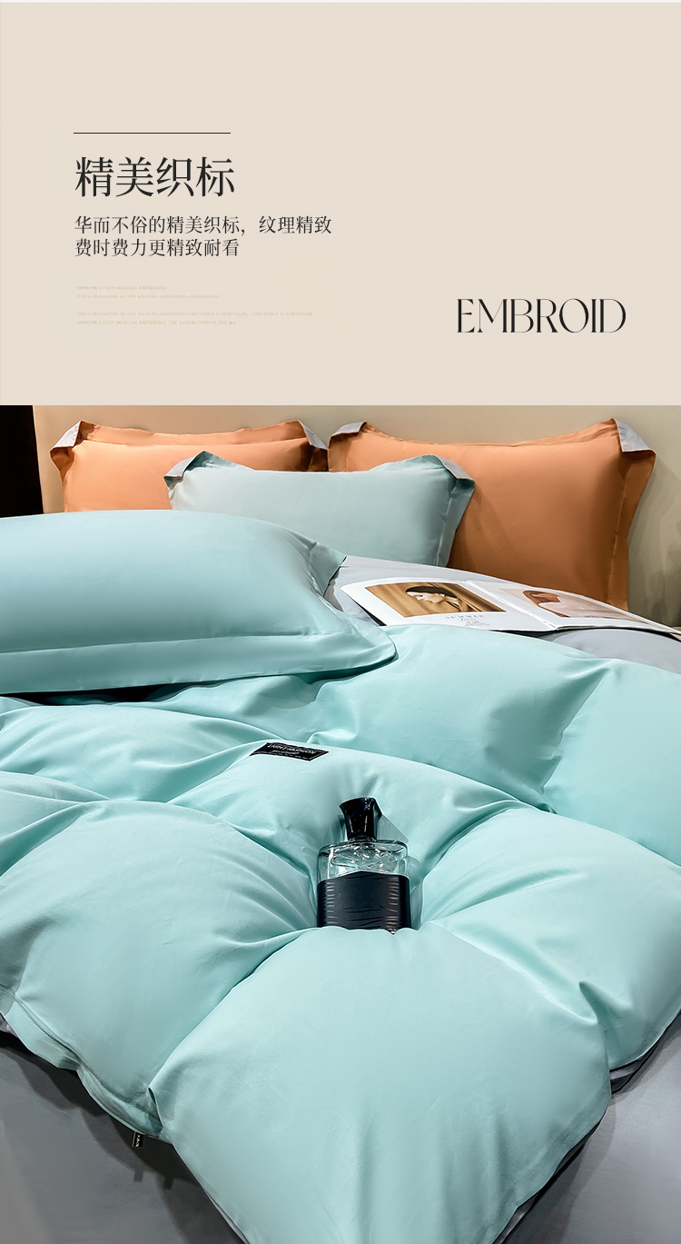 晚安家纺 慕纯拼色床单四件套-浅蓝 200*230cm 100%棉 水蓝色(单位:套)