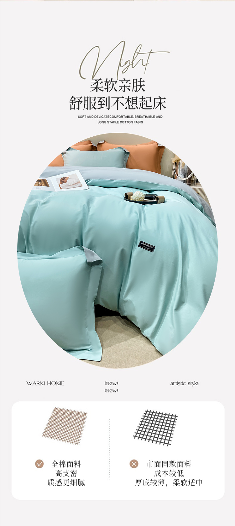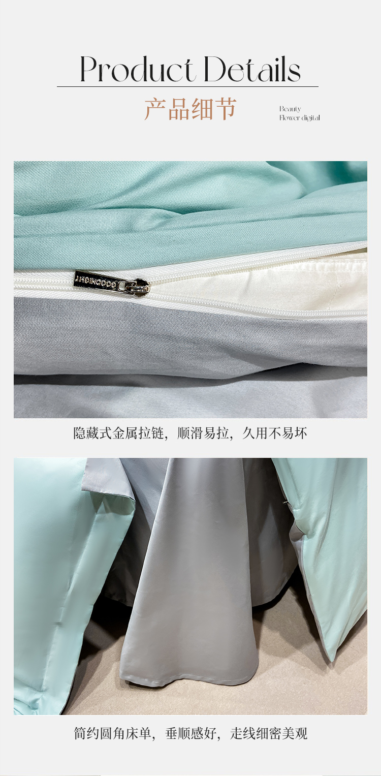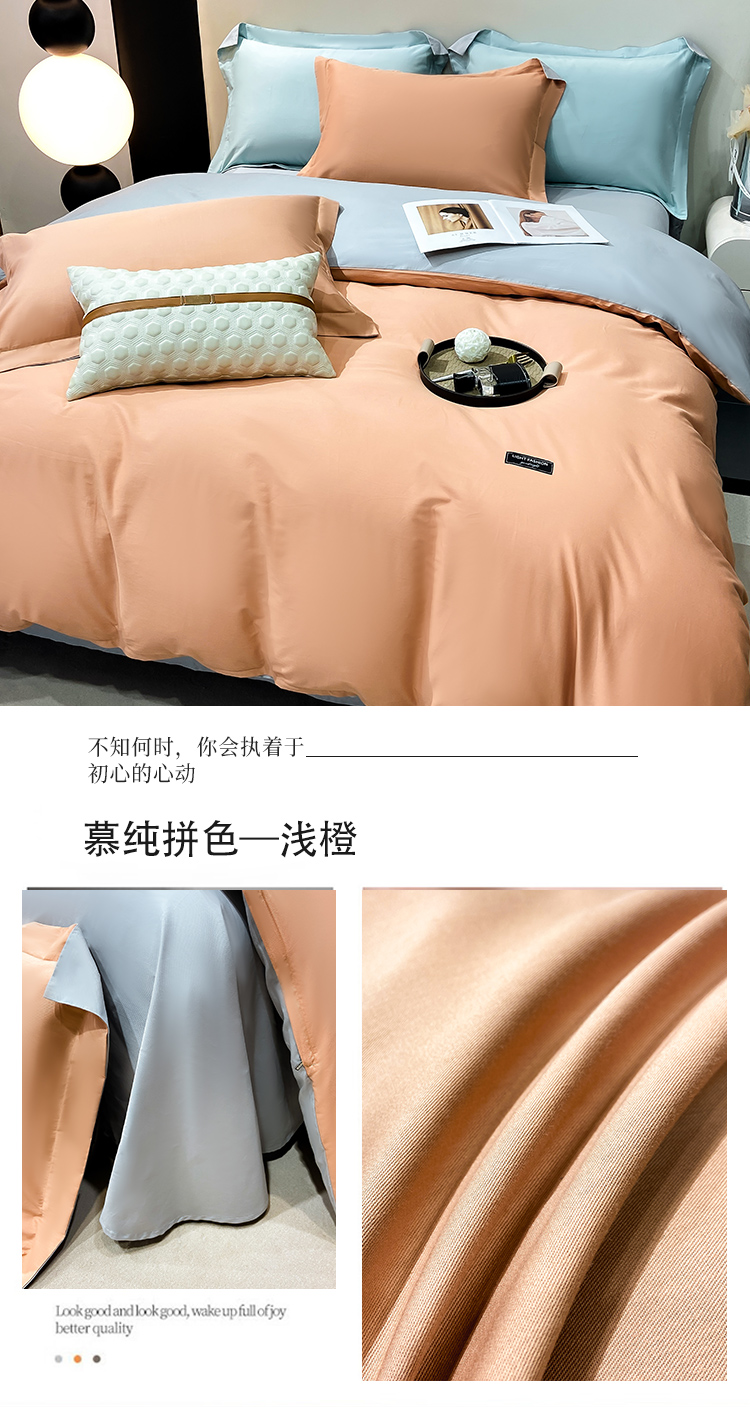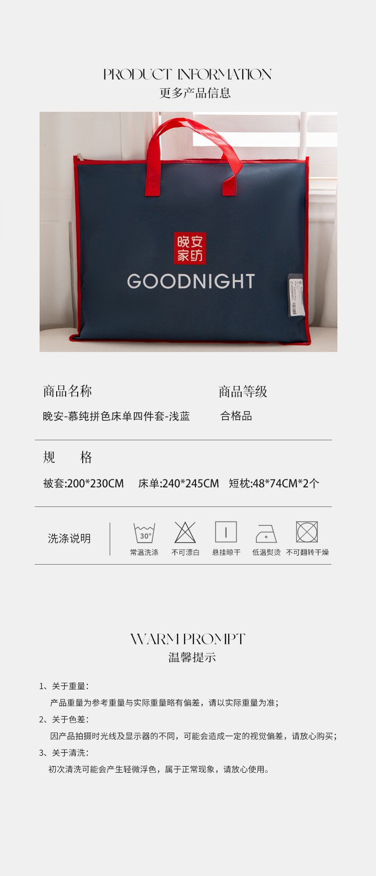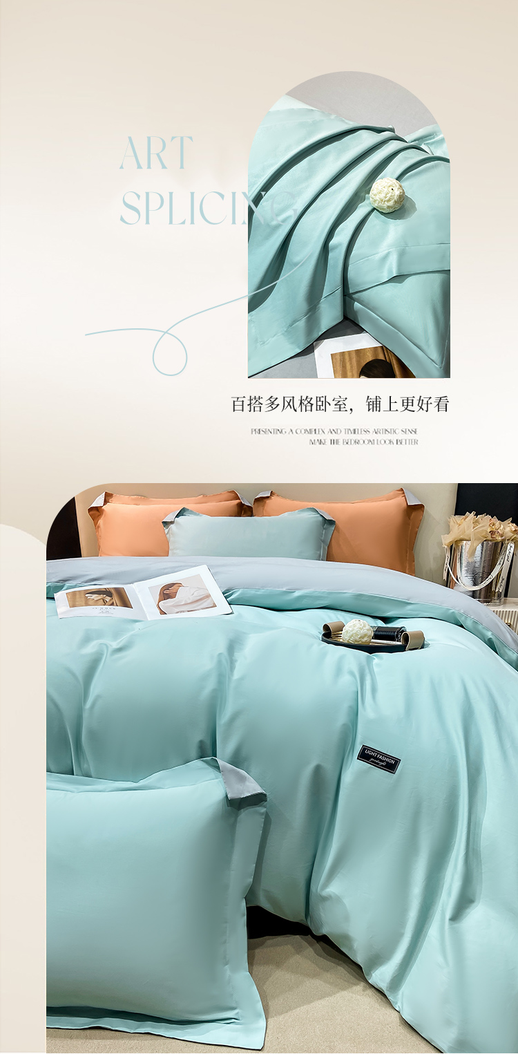 晚安家纺 慕纯拼色床单四件套-浅蓝 200*230cm 100%棉 水蓝色(单位:套)