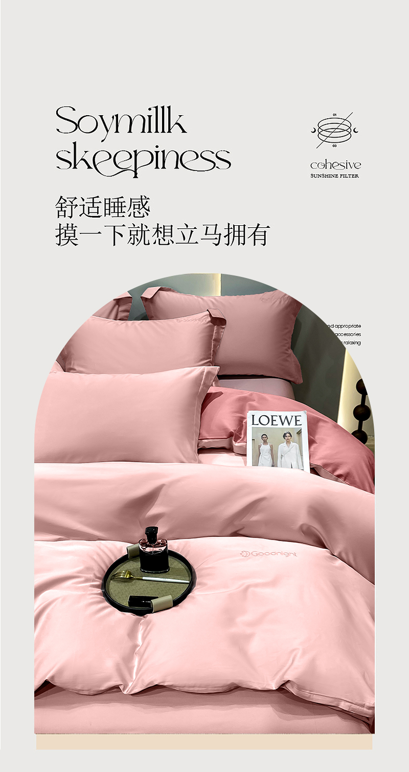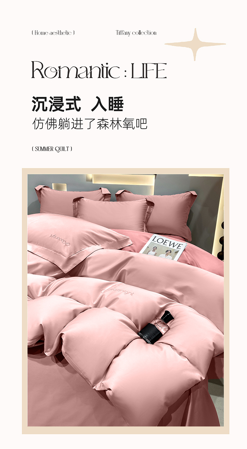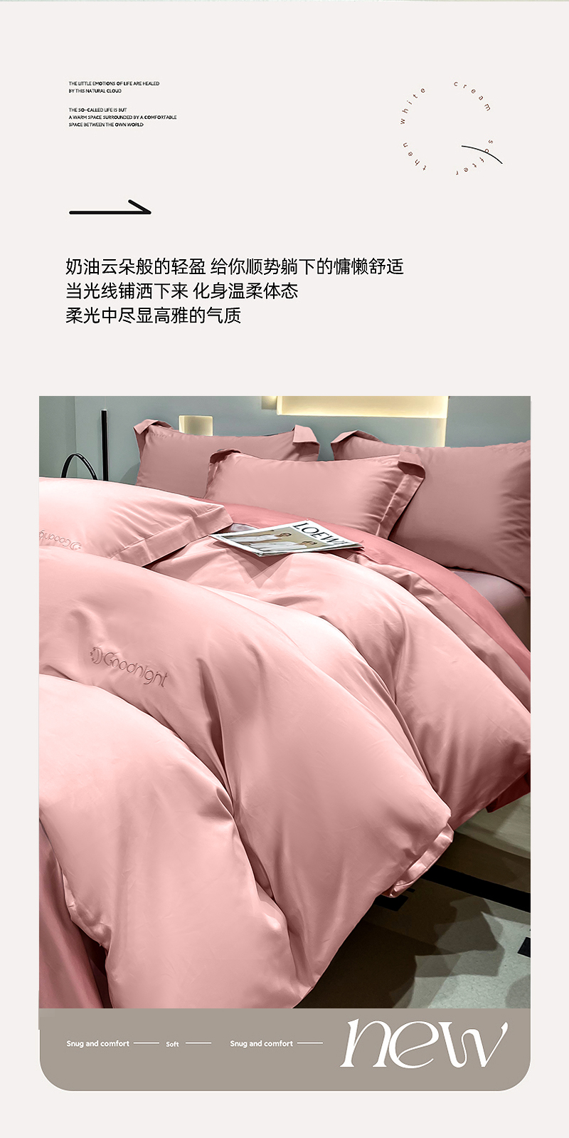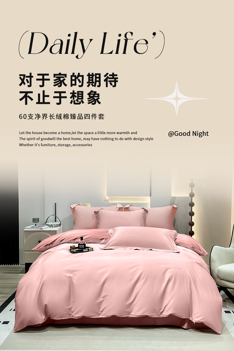 晚安家纺 60支净界长绒棉臻品四件套-粉 200*230cm 100%60支长绒棉 粉色(单位:套)