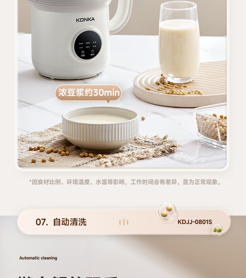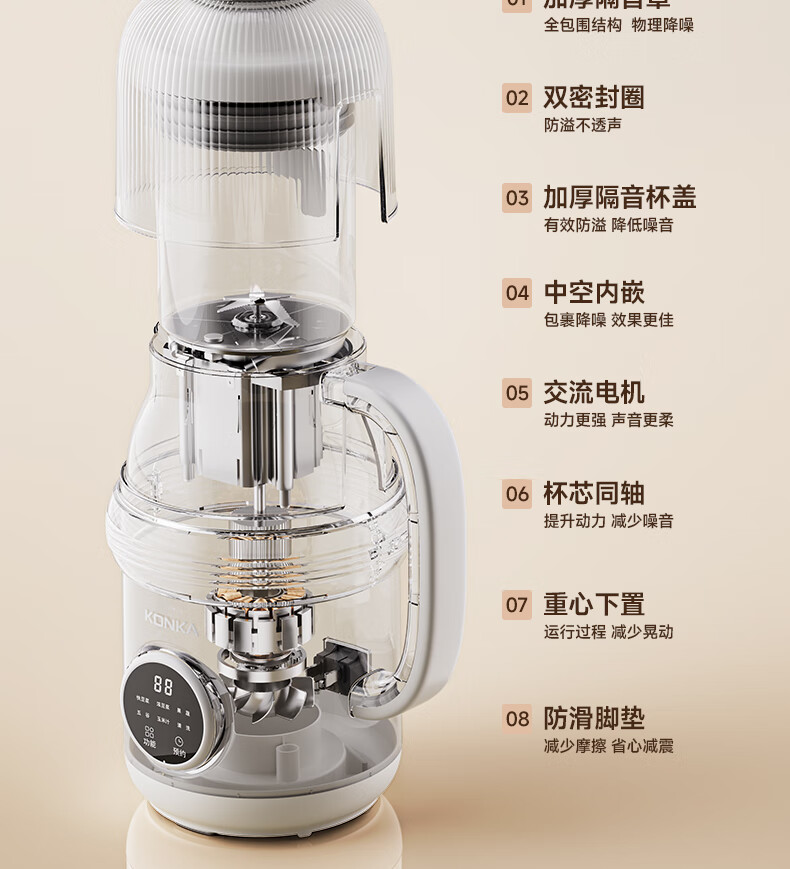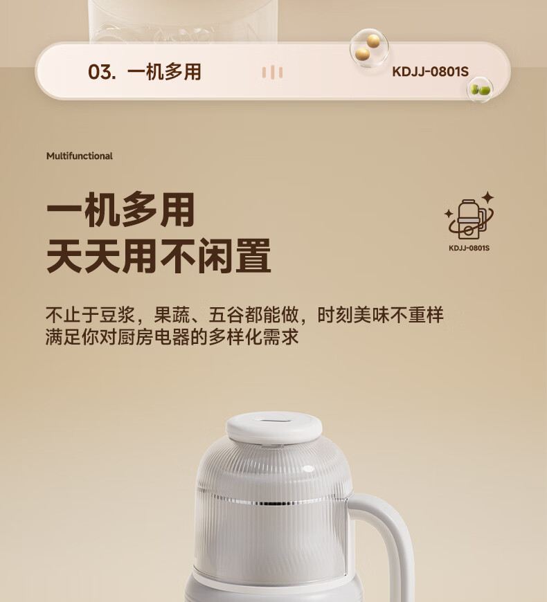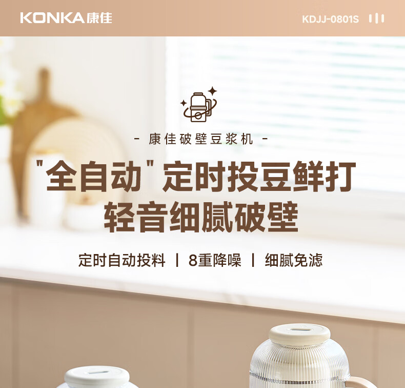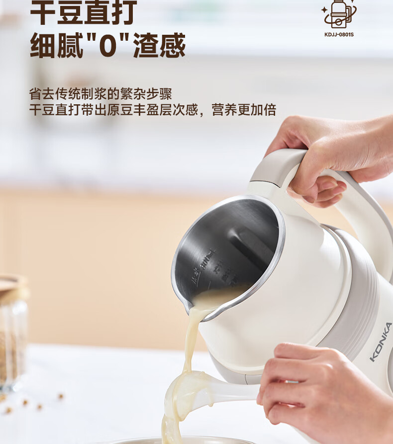 康佳(KONKA) KDJJ-0801S(H) 热饮600ML/冷饮800ML 破壁豆浆机 米黄色(单位:台)
