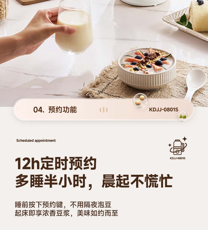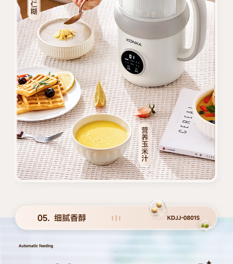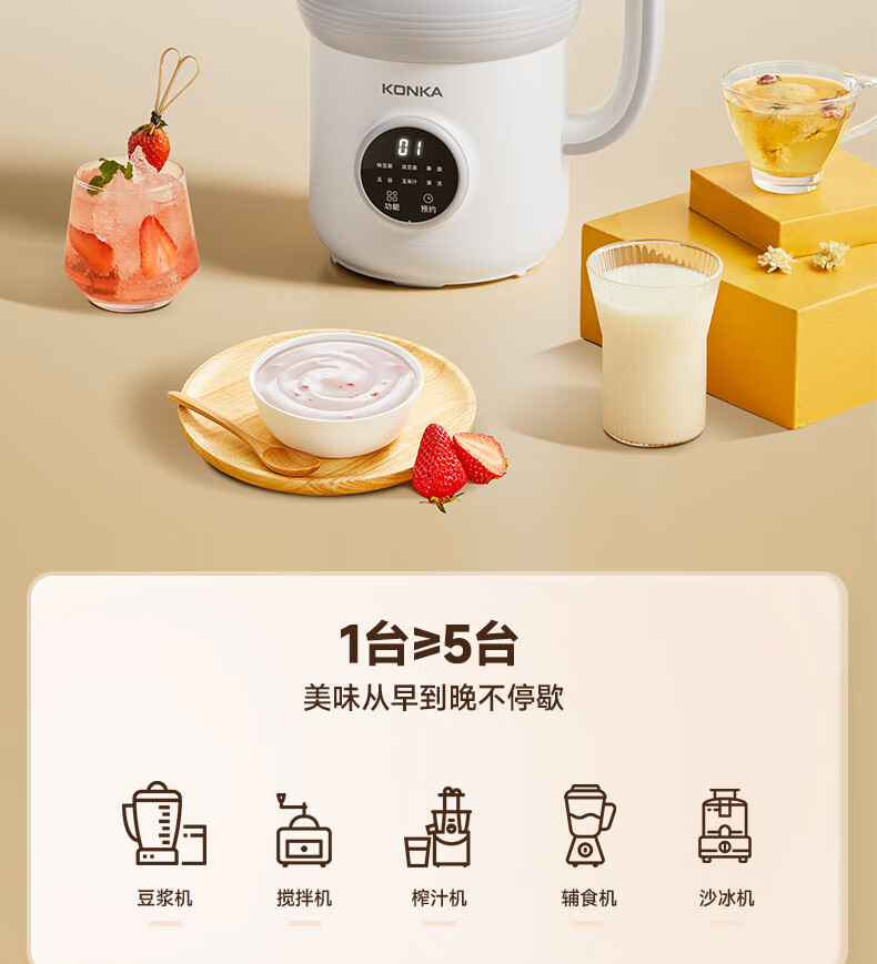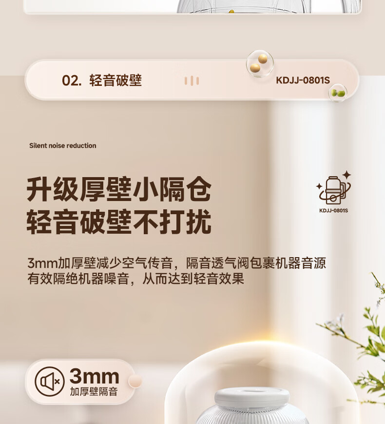 康佳(KONKA) KDJJ-0801S(H) 热饮600ML/冷饮800ML 破壁豆浆机 米黄色(单位:台)