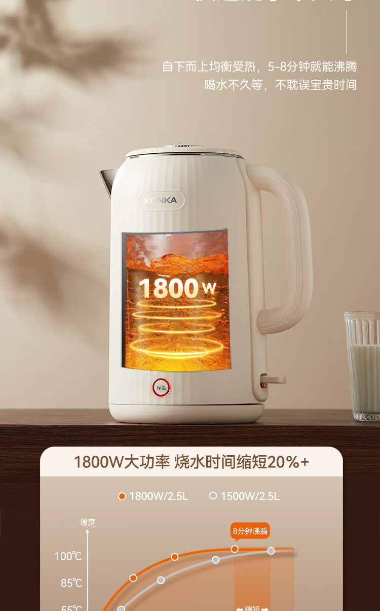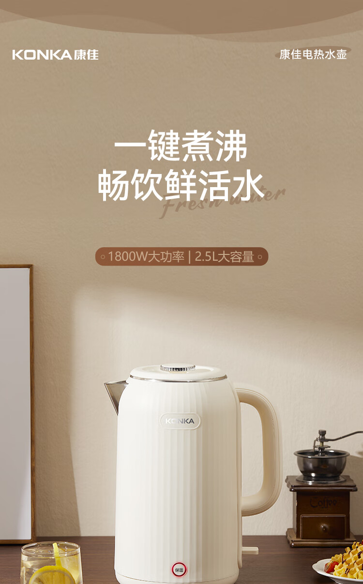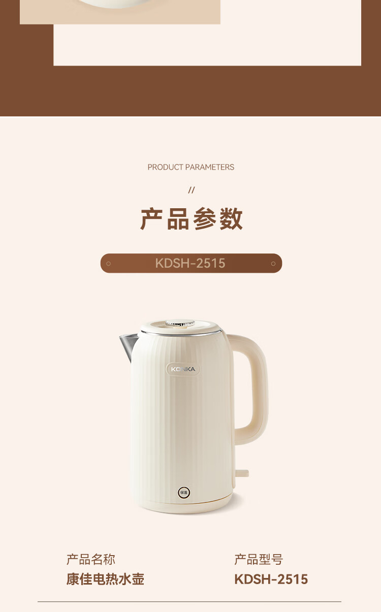 康佳(KONKA) KDSH-2515(B) 2.5L 电热水壶 奶杏色(单位:台)