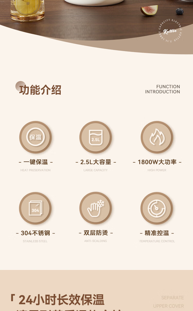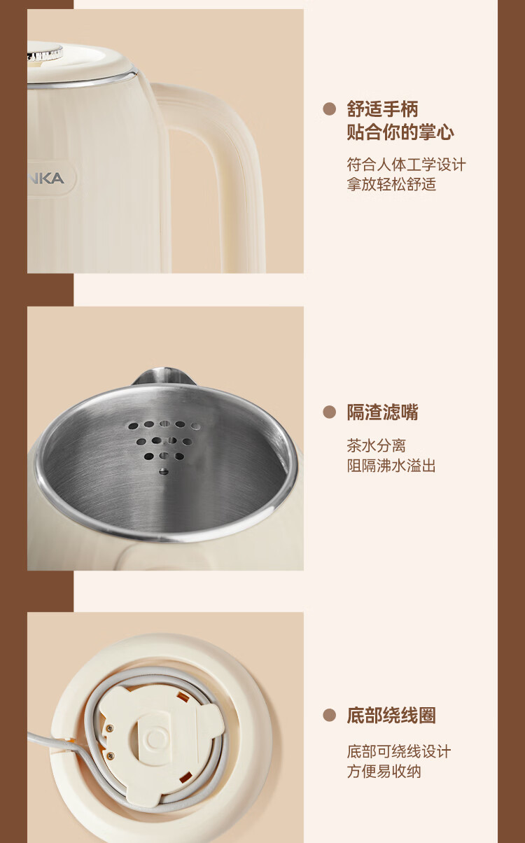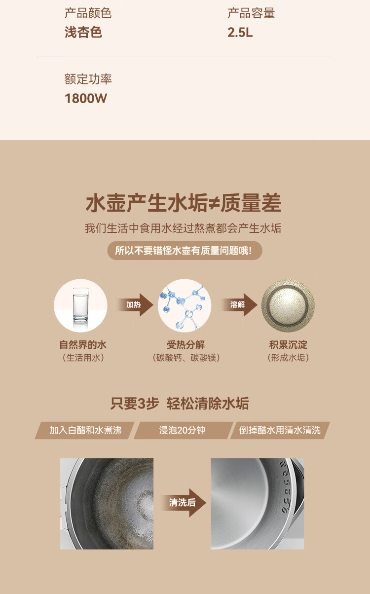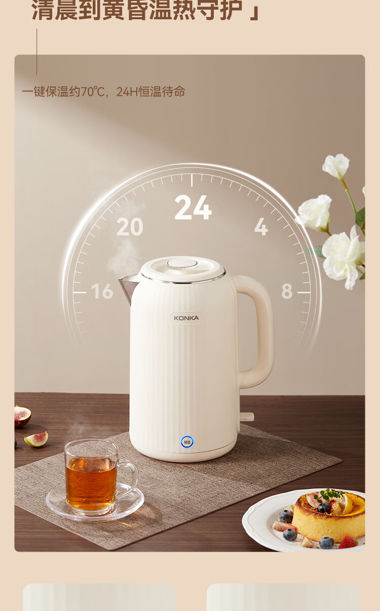 康佳(KONKA) KDSH-2515(B) 2.5L 电热水壶 奶杏色(单位:台)