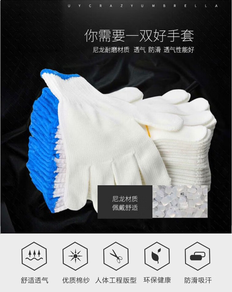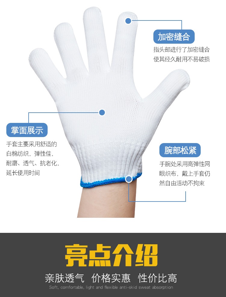 百舸(BAIGE) 尼龙线劳保手套 12双 劳保手套 白色(单位:包)