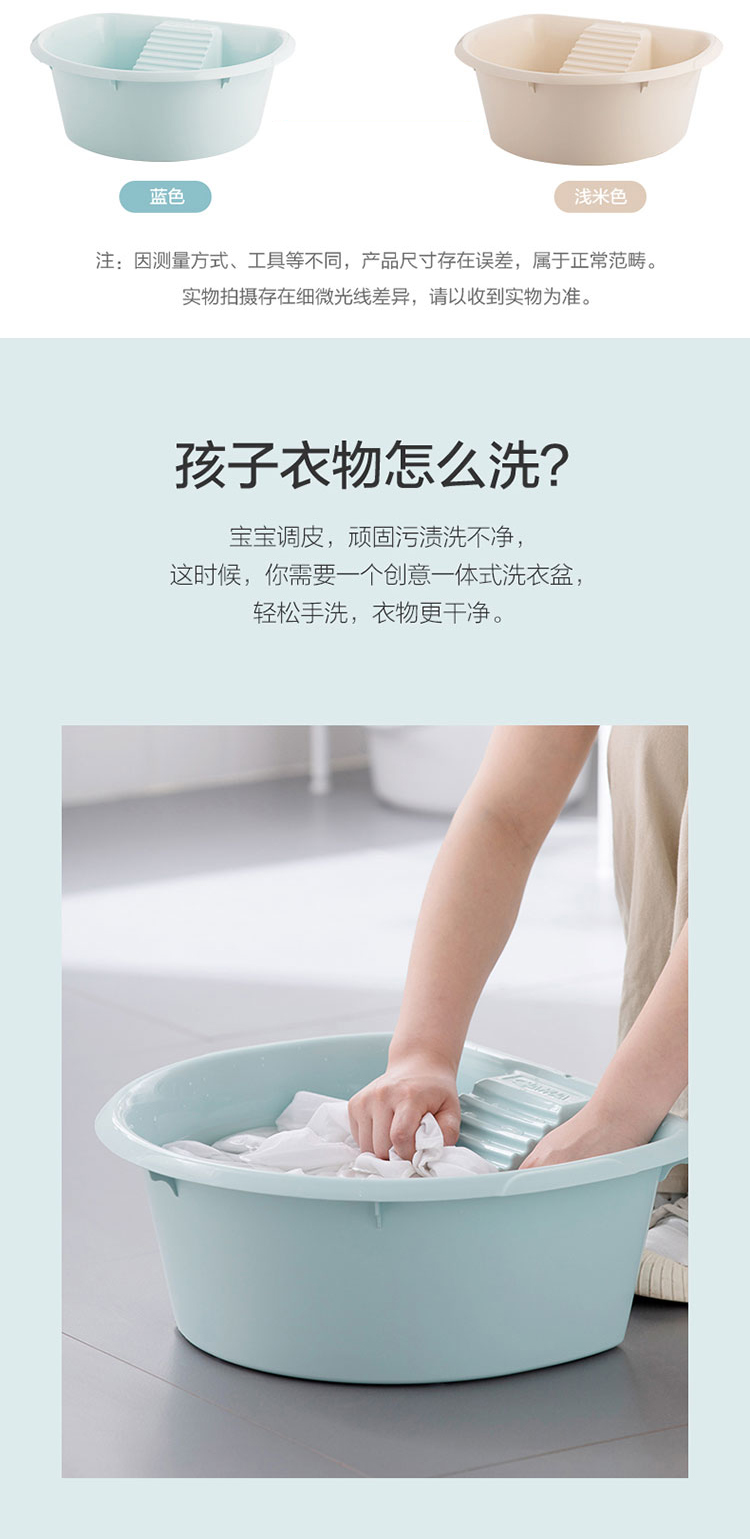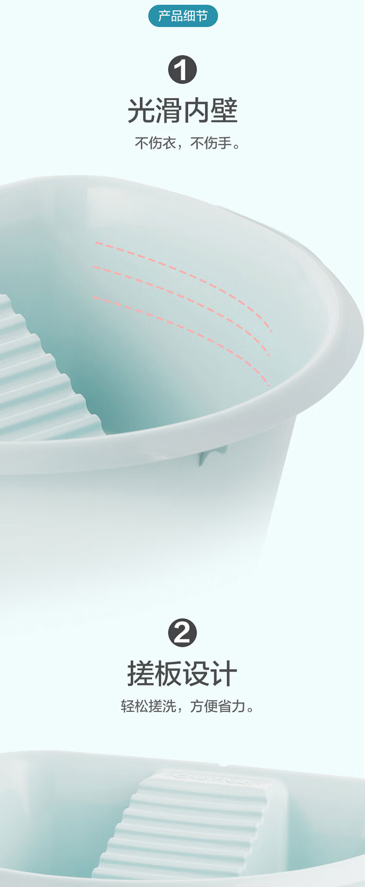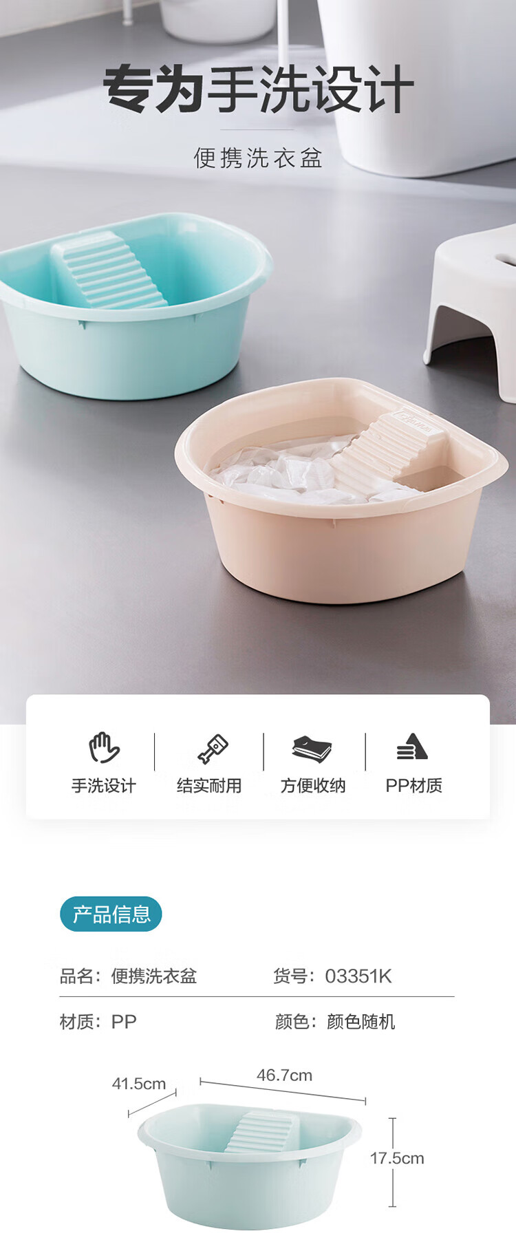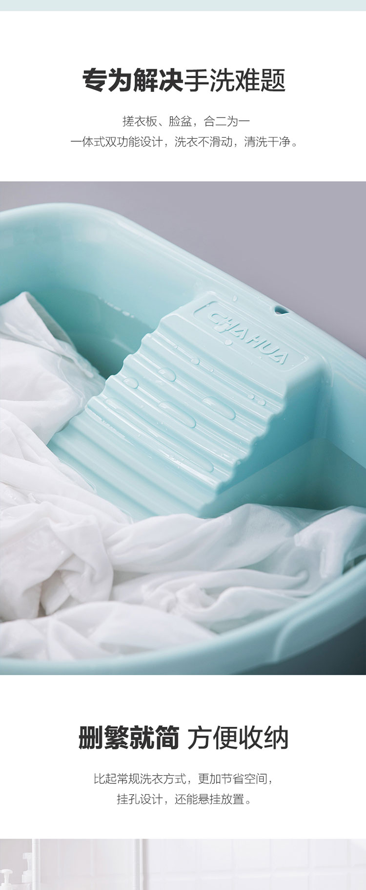 茶花(CHAHUA) 脸盆带搓衣板 41.5*46.7*17.5cm 塑料盆 颜色随机(单位:个)