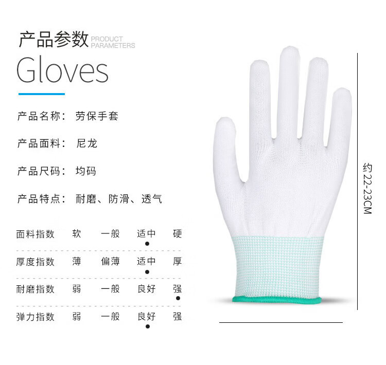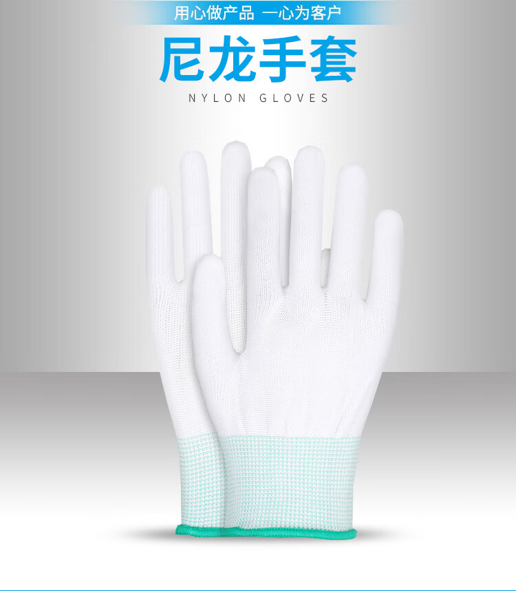 百舸(BAIGE) PU涂指尼龙线手套 S码12双 透气耐磨 白色(单位:组)