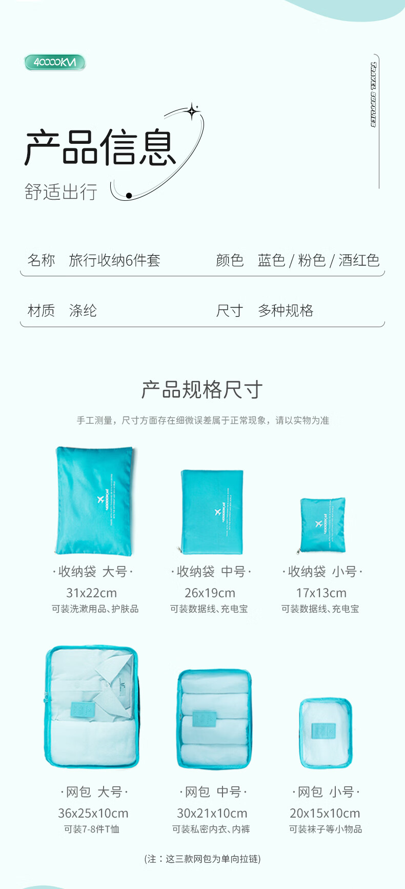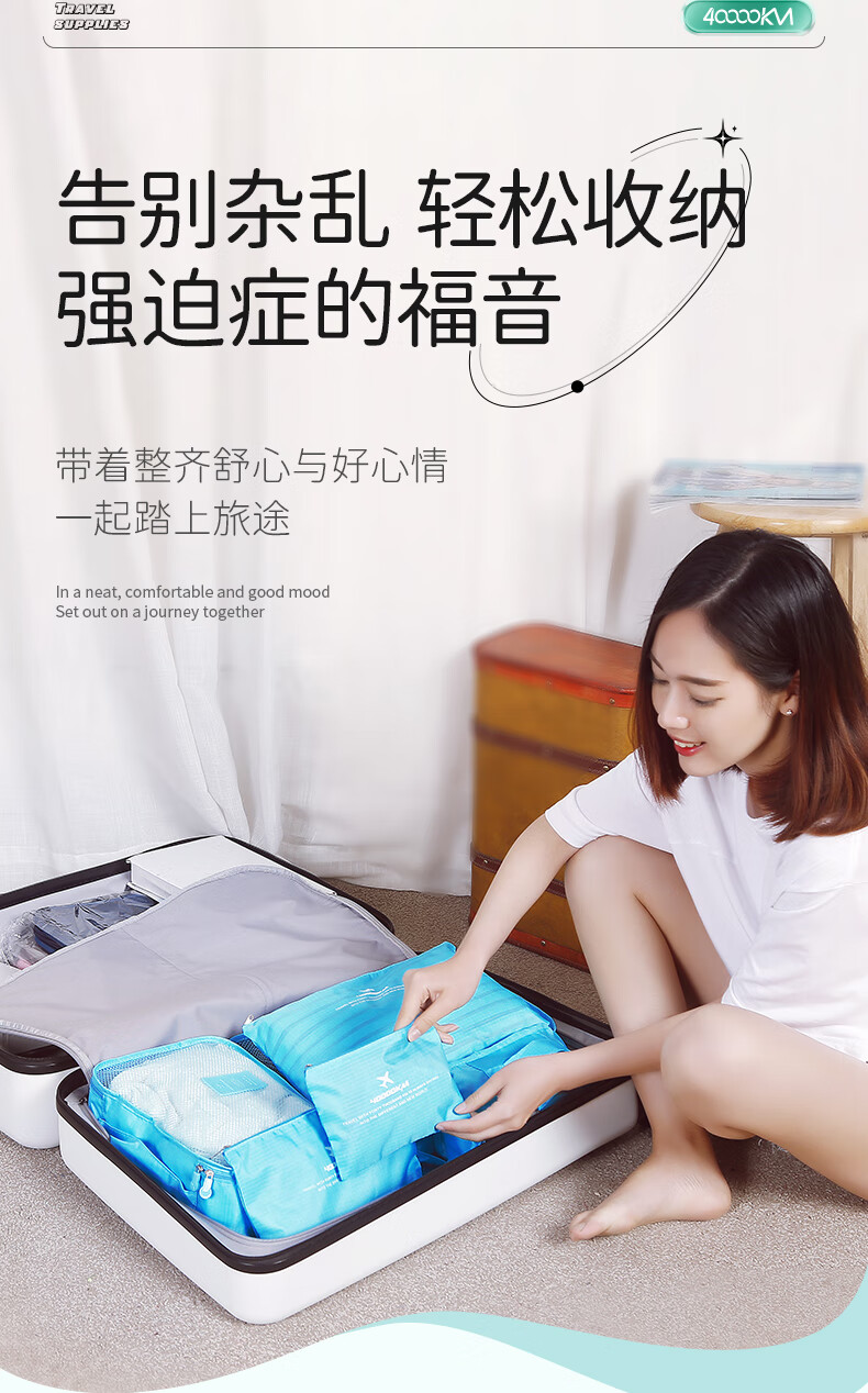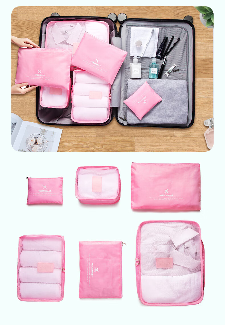 四万公里 SW1003 旅行收纳6件套 旅行收纳袋 粉色(单位:套)